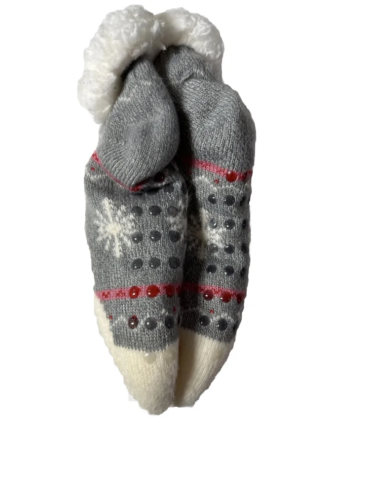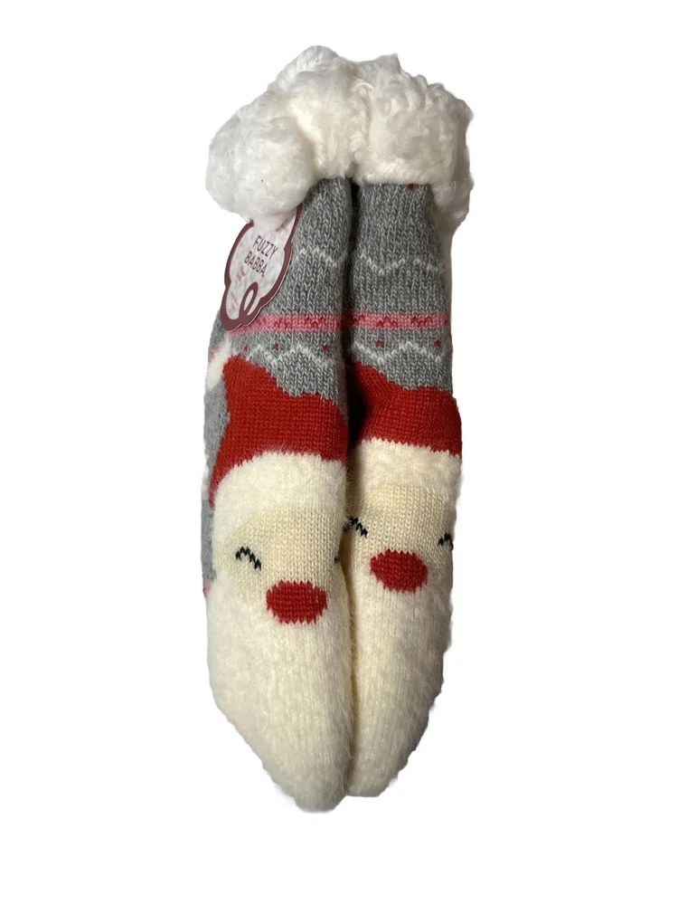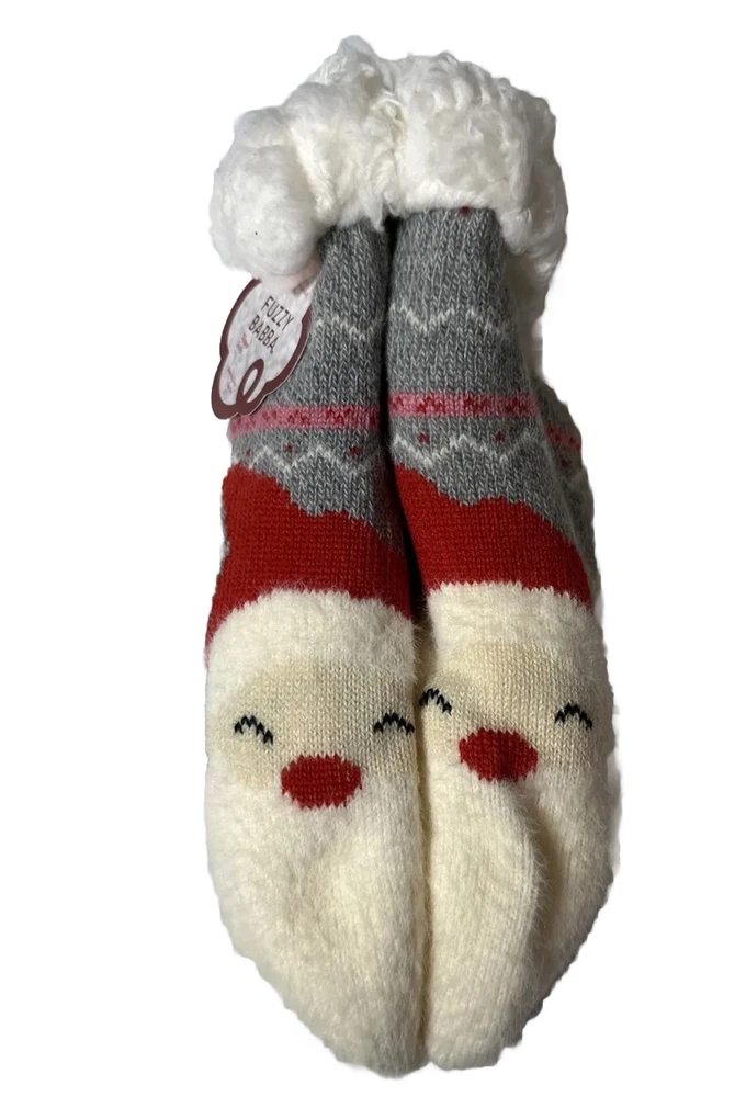 Stay cozy and comfortable in these Fuzzy Babba Santa Crew Socks. Featuring a colorful and festive design, these socks are perfect for the holiday season. The anti-slip bottoms ensure safety while walking on any surface. These Comfy socks are made for women with a size range of 9-11. The Brand is Comfy and the Department is Women. The Type is Socks and Style is Crew Socks. The color is Multicolor, making it perfect to match with any outfit. These socks are new with tags and are perfect for keeping your feet warm during the cold winter months.