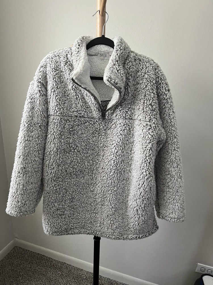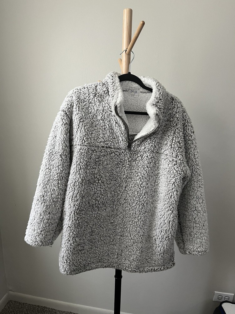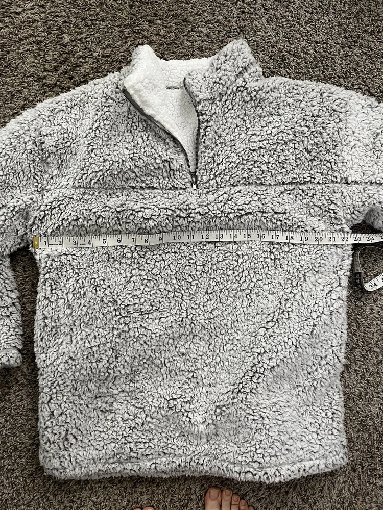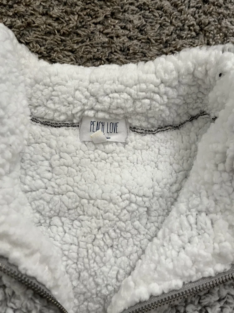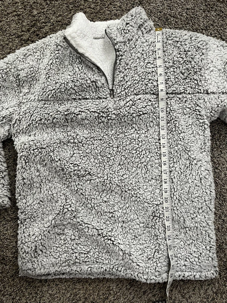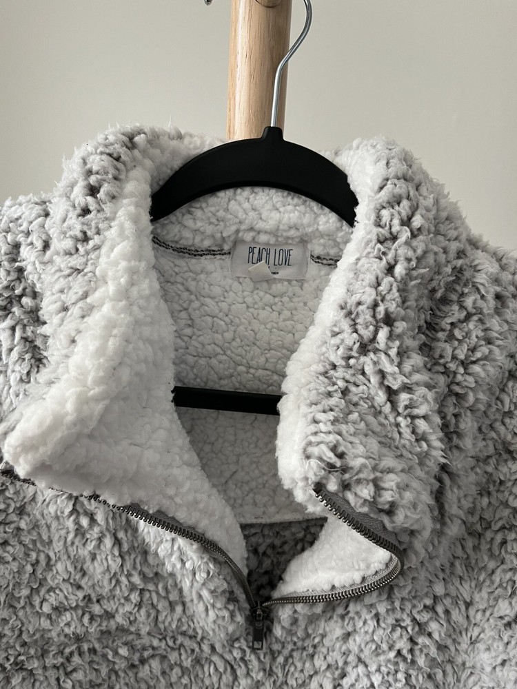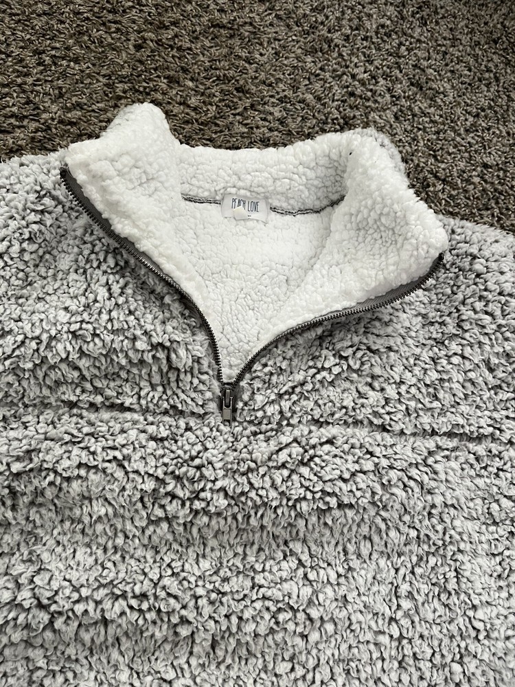 Stay warm and cozy during the fall and winter seasons with this silver spotted fuzzy zip pullover from Peach Love California. Made from 100% polyester fleece fabric, this relaxed fit sweatshirt features a collared neckline, long sleeves, and a 1/4 zip closure with accents of a pullover style. Ideal for various activities like school, golf, hiking, and skiing, this sweatshirt is perfect for any woman's wardrobe. The size M sweatshirt is designed to fit regular size types and comes with features like a spotted pattern and 1/4 zip for a stylish look. I only wore a few time and in cold weather this is surely comfortable and warmđ. I donât see any flaw so far this pullover is stayed in my closet neatly last few yearsâźď¸âď¸