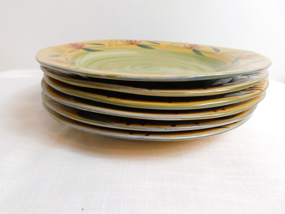 Pier 1 Imports Hand Painted Stoneware Elizabeth Dinner Plates Lot of 6. Plates measure 11 5/8" diameter. Discontinued pattern. Circa: 2005. Compare our price to Replacements Ltd. at 35.99 per = 215.94++++Shipping!!!! CONDITION: Preowned: Very Good!!!! no chips, cracks, hairlines. Minor Utensil marks. We combine orders for cheaper shipping costs. Be sure to visit our store Bits Of Treasures for some other great treasures.