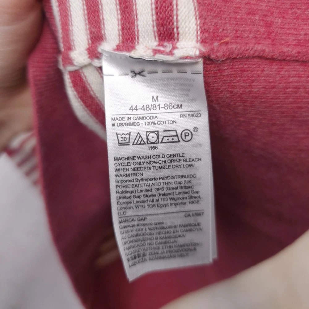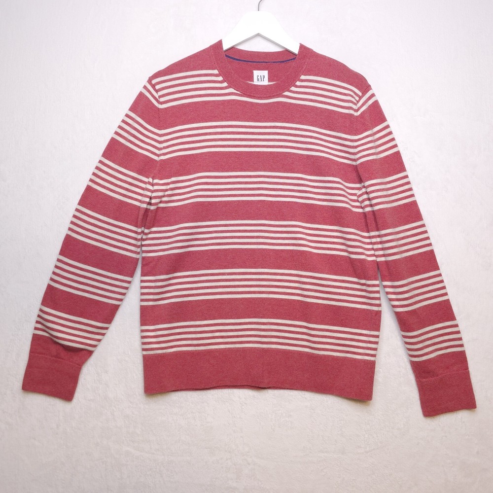 GAP Mainstays Crewneck Sweater Barn Red Stripe 100% Cotton All Seasons Mens Sz M Very good condition, no flaws. Measurements: Chest (underarm to underarm): 20". Length (shoulder to bottom hem): 26". S...