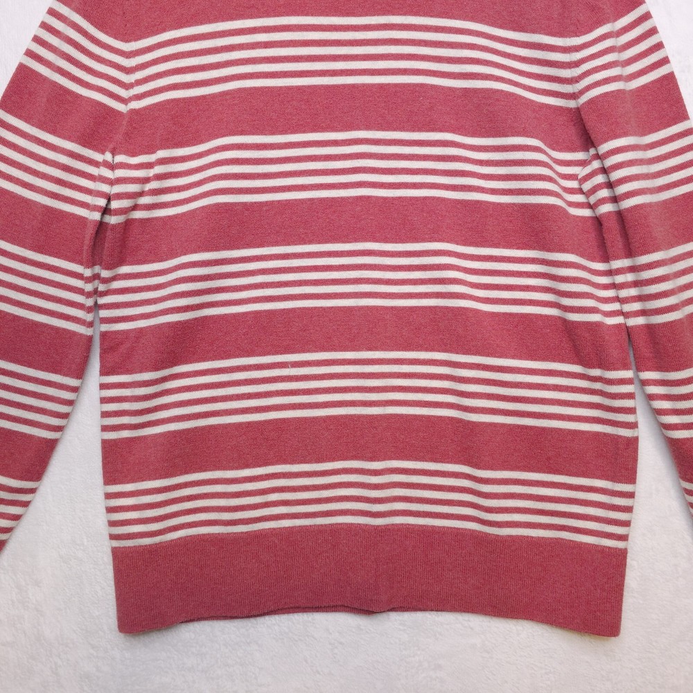 GAP Mainstays Crewneck Sweater Barn Red Stripe 100% Cotton All Seasons Mens Sz M Very good condition, no flaws. Measurements: Chest (underarm to underarm): 20". Length (shoulder to bottom hem): 26". Sleeve (underarm to cuff): 19".