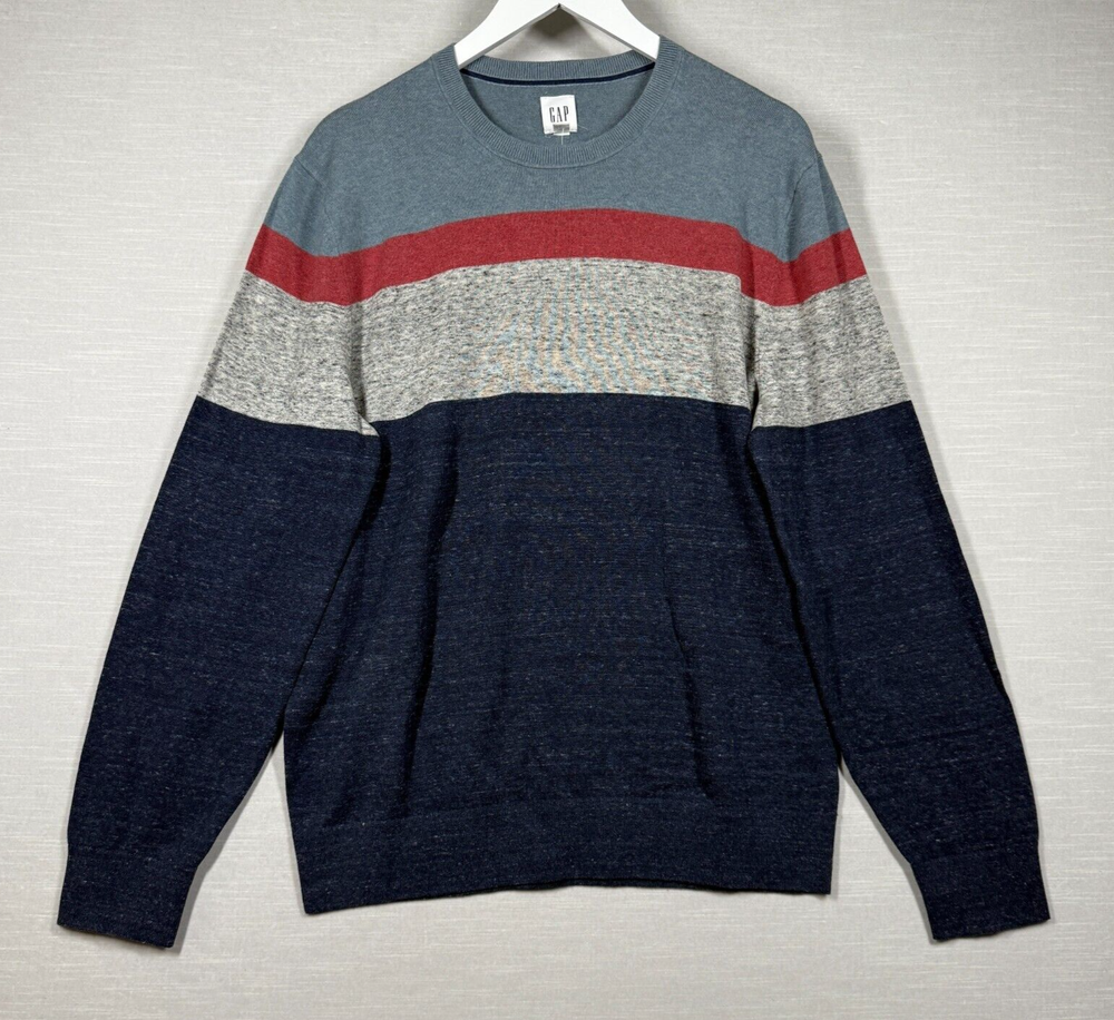 Item: GAP Sweater Men Large Blue Red Gray Mainstay Crewneck Condition: Great pre-owned condition. Measurements: Refer to photos for detailed measurements. We ship out next business day! Fast Shipping. Quality Packaging. All items have been cleaned per eBay standards & policies. We are happy to answer any questions you may have.