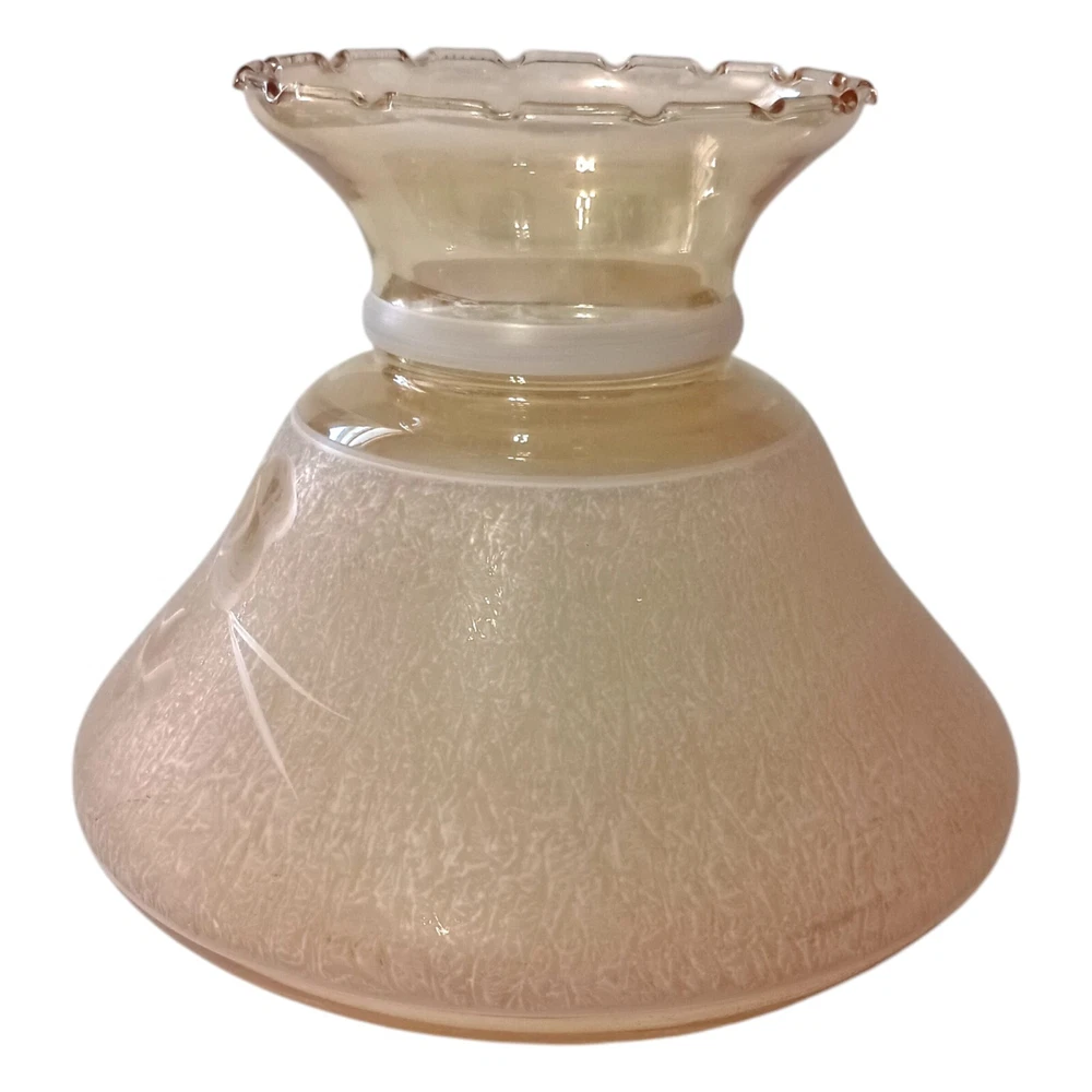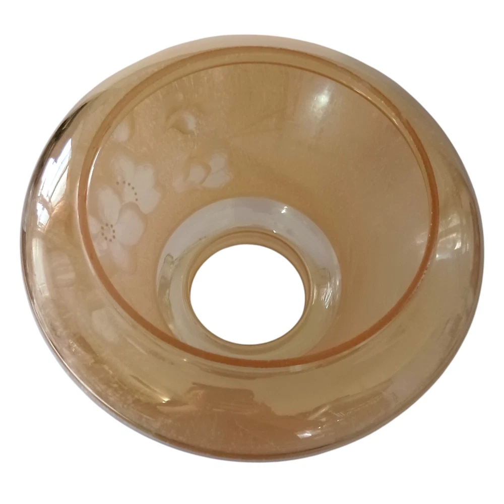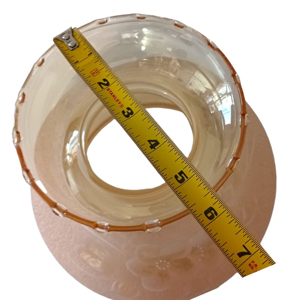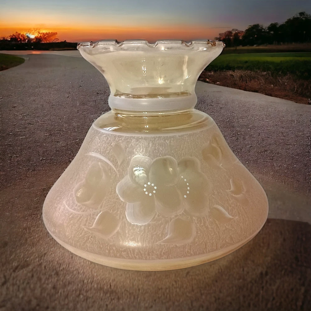 This gorgeous vintage hurricane lamp shade is a true treasure! The iridescent peach glass shimmers beautifully, and the delicate hand-painted white florals add such elegant charm. It's in flawless condition—no chips or cracks—and the perfect size to add a warm, nostalgic glow to any room. The craftsmanship is stunning, and you can tell it was made with care. A fantastic find for collectors or anyone who loves unique vintage decor!