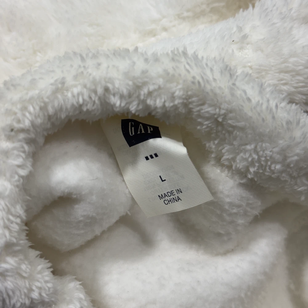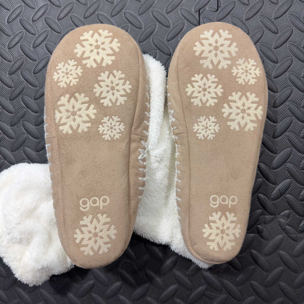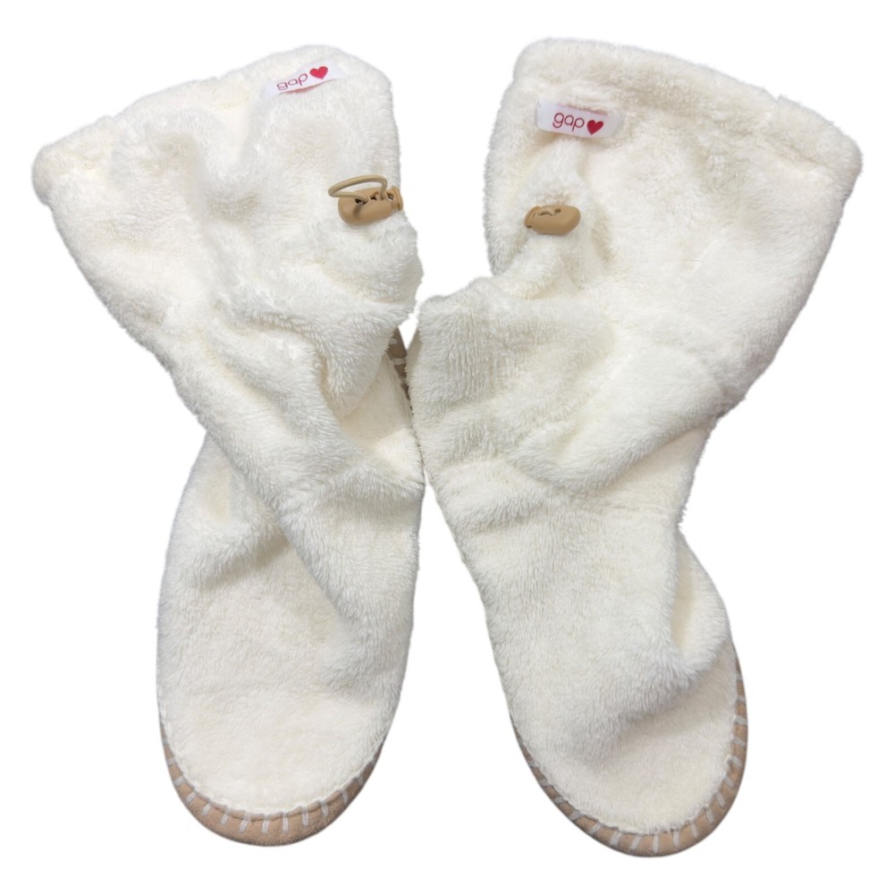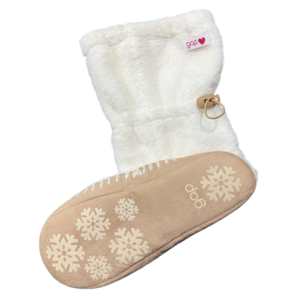 Gap Stocking Shoes Women's Large White Drawstring Lock Soft & Cozy Sherpa Throw Description The Gap Stocking Shoes are cozy boots for women in a large size, featuring a soft and cozy sherpa throw material in a modern white color. These boots have a drawstring lock design for easy wear and a snug fit. Made in China, these shoes are perfect for the Christmas season, adding a touch of modern style to your holiday wardrobe. Perfect for lounging at home or adding a cozy touch to your winter outfits, these stocking shoes are both fashionable and comfortable. Please message me if you have any questions about size and condition.