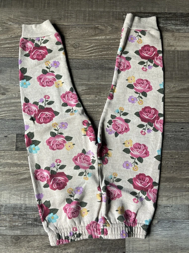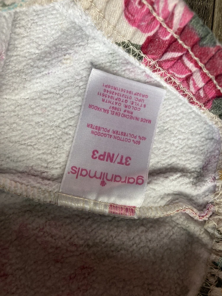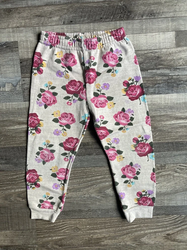 Get your little one ready for any adventure with these cozy Garanimals floral fleece sweat pants. Featuring a beautiful pink and beige floral pattern, these sweatpants are perfect for travel, playtime, school, and casual outings. The elastic waist ensures a comfortable and secure fit, while the pull-on closure allows for easy dressing. Made from soft and durable cotton material, these pants are machine washable for easy care. With no signs of wear and tear, these pants are in great shape for your little one to enjoy. Upgrade your baby's wardrobe with these stylish yet practical pants today!