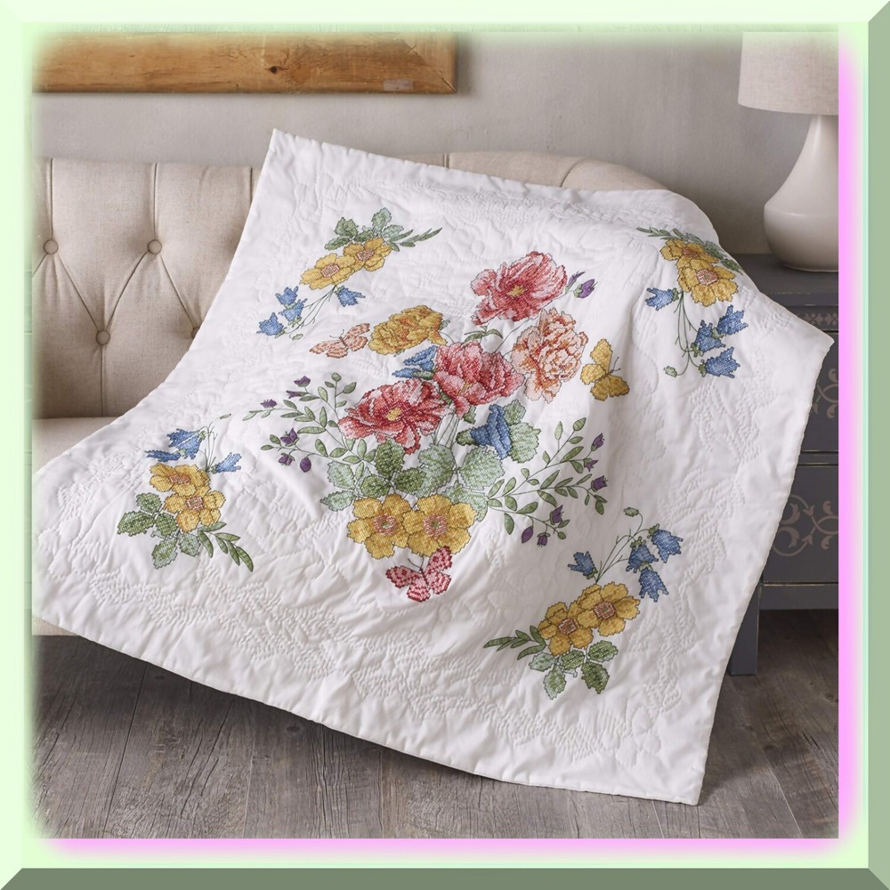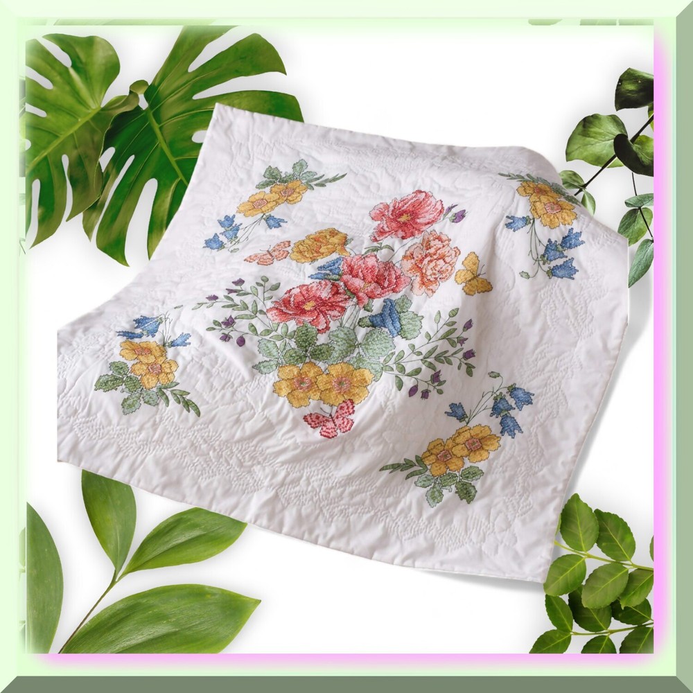 Elevate the charm of any space with our exquisite lap quilts. Crafted from a durable blend of 50% polyester and 50% cotton, each quilt is imprinted with washable ink for long-lasting beauty. Our all-inclusive kit comes with fabric, cotton embroidery floss, needle, and simple instructions for a stress-free crafting experience. Just add your own backing and batting materials to complete the look. ====== FEATURES: ======== A) Artistic Designs: Immerse yourself in the mesmerizing world of detailed designs crafted by popular licensed artists. Each stroke of the brush brings to life captivating motifs that will leave you spellbound. These intricate patterns are carefully curated to cater to your decorating desires, ensuring a visually stunning masterpiece. B) User-Friendly Instructions: Embark on your creative journey with ease, thanks to our easy-to-follow instructions. We understand the importance of clear guidance, so we have meticulously crafted step-by-step directions that even a novice can comprehend effortlessly. Unleash your inner artist and let your imagination soar as you bring these designs to life. C) Personalization Possibilities: Elevate your gifting game with the ability to personalize each creation. Our product offers you the opportunity to craft a one-of-a-kind gift that will leave a lasting impression. Tailor your masterpiece to reflect the recipient's unique personality, creating a heartfelt present that will be cherished forever. D) All-Inclusive Components: Dive into the creative process without any hassle, as our product comes with all the necessary components. The package includes high-quality stamped fabric, ensuring a seamless starting point for your artistic endeavors. With the fabric and instructions at your fingertips, you have everything you need to embark on your creative journey.