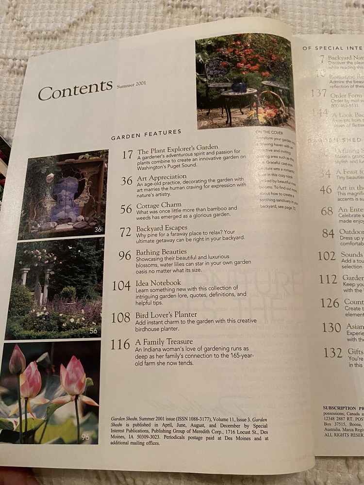 Garden Shed Magazine Spring 1997 Better Homes and Gardens is a magazine focused on home and garden genre. It was published in 1997 and written in English. The magazine is likely to contain articles and tips on gardening and home improvement.