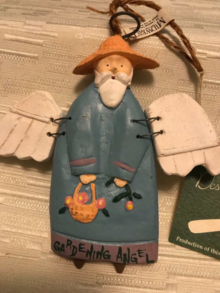 This gardening Angel is part of the designer collection by Midwest in porters of Cannon Falls. It measures 4 1/4 inches tall 4 1/2 inches wide...