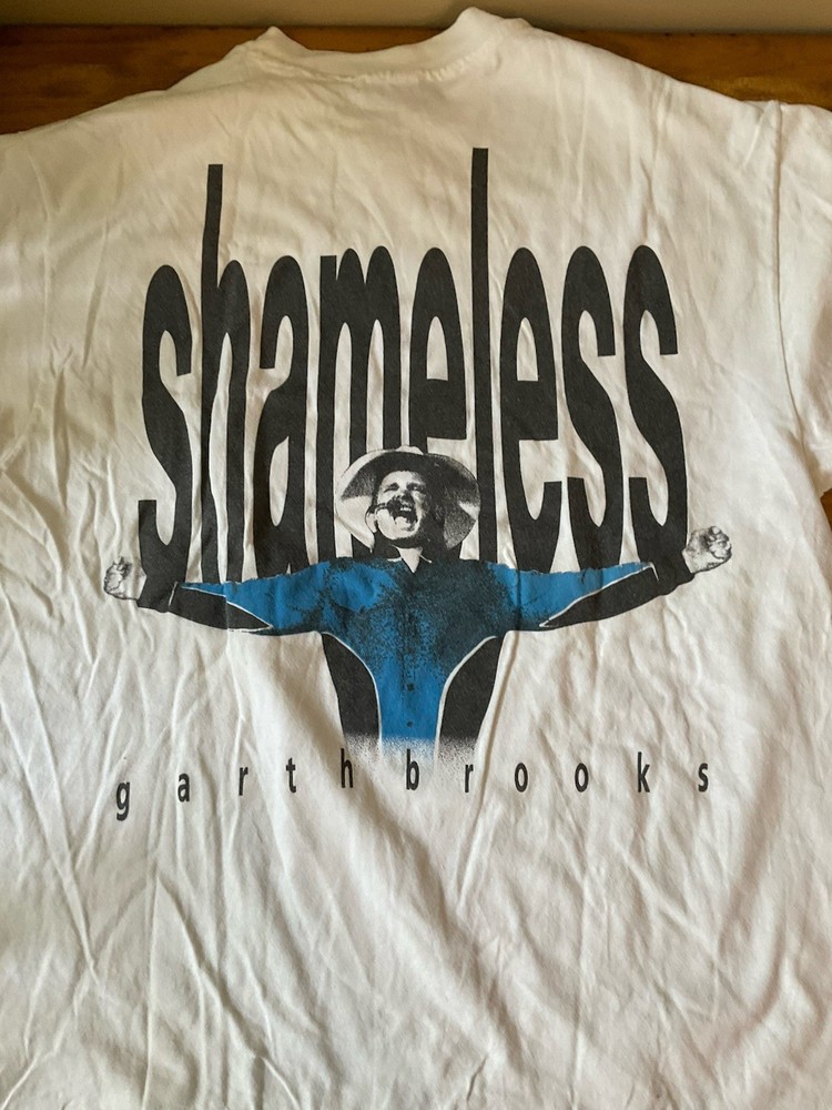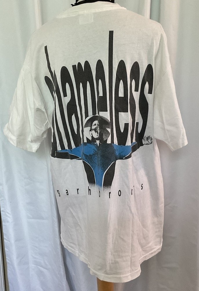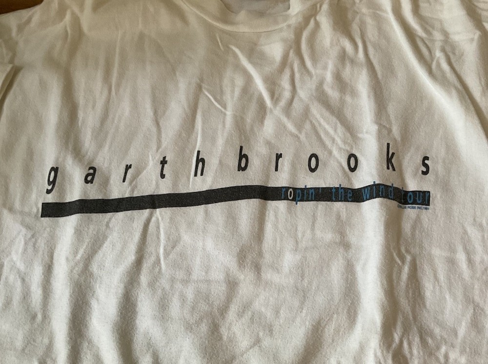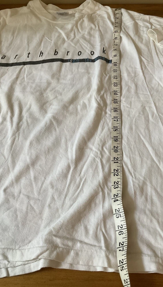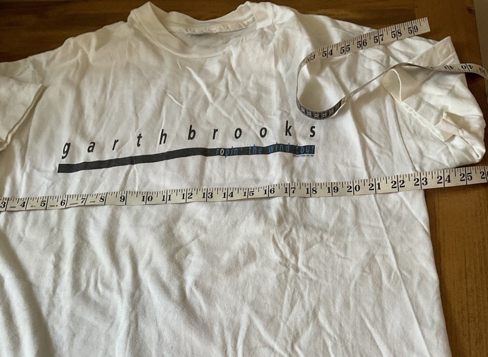 This vintage Garth Brooks Ropin The Wind Tour T-Shirt is a must-have for any 90s music enthusiast. The shirt features a classic white color with a double-sided design, showcasing the tour dates and logo. It is made of a comfortable knit fabric with a crew neck and short sleeves, perfect for all seasons. The T-shirt is easy to care for and machine washable, made of a breathable cotton. This Hanes Beefy-T product line T-shirt is perfect for men and has a regular fit. In great condition. Free of odors. No rips or tears noted. Please see pictures for proper measurements. Will be packaged well to ensure safe delivery. This seller reserves the right to change shipping mode and carrier as needed. Thank you. Smoke free home. B01-23