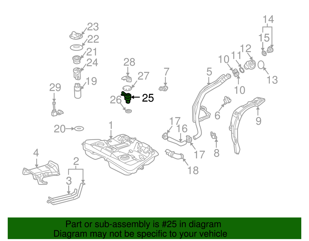 octoyotaparts Genuine Fuel Tank Roll Over Valve 77390-12030 Part can be found as # 25 in the diagram above Genuine Toyota & Scion Parts Product Description Fits Corolla , Matrix Specifications Brand Toyota Manufacturer Part Number 77390-12030 SKU 77390-12030 Product Genuine Fuel Tank Roll Over Valve 77390-12030 ONLY PART REFERENCE #25 ON THE DIAGRAM IS INCLUDED Terms and Conditions Return Policy Please call or email us to arrange for any returns You must include a copy of the invoice or packing slip for all returns. Parts must be resaleable and in the original packaging. Do not write on manufacturers box. Printed labels only allowed. No other stickers/stamps. All manufacturer labels must still be in tact. This means the bar codes cannot be blacked out. Parts that have been installed or used non returnable. Electrical parts are not returnable. NO EXCEPTIONS. We do reserve the right to refuse any return parts we find have been installed, are do not meet the above criteria. Return shipping is to be paid by the customer Original shipping is non returnable. (This includes items with free shipping) Any return request must be made within 30 days. However, you may contact us for special exceptions. Shipping Policy We ship Monday - Friday, excluding holidays. Most orders ship within 1 business day, and usually no later than 3 business days after the order is placed. Anything ordered after 4 pm PST on Fridays, will likely ship the following Tuesday. Backorders do happen occasionally and may delay shipment. We will notify you as soon as possible if this does happen. Free Shipping does not qualify for large items to HAWAII, GUAM, PUERTO RICO, VIRGIN ISLANDS, and ALASKA When shipping express, please be sure to add handling times to expected delivery time. If your order is time sensitive, please contact us to confirm we can meet your needs. Shipping Terms In stock orders ship within 24 hours. Weekend orders will be processed the next business day. If a part is not in stock and must be ordered from the manufacturer, it usually takes 2-3 days to arrive to us and will be promptly shipped to you. Most of the orders are shipped complete within 2-3 business days. A few of the parts ordered from the manufacturer may take up to 5-6 business days to arrive and will shipped to you immediately. Depending upon location, ground shipments usually take 2-7 days. Your order may be shipped Overnight for an additional cost. Oversized shipments will be additional; you will be contacted prior to shipping for approval. We cannot guarantee transit times for ground and oversize orders. Shipping Carrier substitutions may be made at our determination in an attempt to reduce shipping cost to the customer. We do not ship internationally. In the unlikely event that a part has been placed on backorder or discontinued, we will do our best to try and find one for you as quickly as possible. We do not ship COD orders. Return Policy Contact us to arrange for any returns. A copy of the invoice will need to be included with the return. There is a 15% restocking fee charged against all returned parts. Parts must be resaleable and in the original packaging. We cannot take back used parts. We cannot take back installed or tried parts. Electrical parts are not returnable. We do reserve the right to refuse and return any parts we find have been installed, are used or do not meet the above criteria. Return request need to be within 30 days of receipt. Cancellation Policy An order or a portion of an order may be cancelled up until the time it is shipped and no longer in our possession. If the cancelled part was special ordered from the manufacturer a return fee of 15% may apply. Home • Newsletter Signup • Contact Us Copyright © 2025 octoyotaparts , All rights reserved. Solution by RevolutionParts, Inc. :: Design by OCDesignsOnline