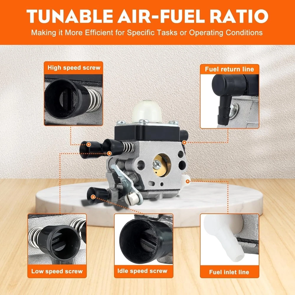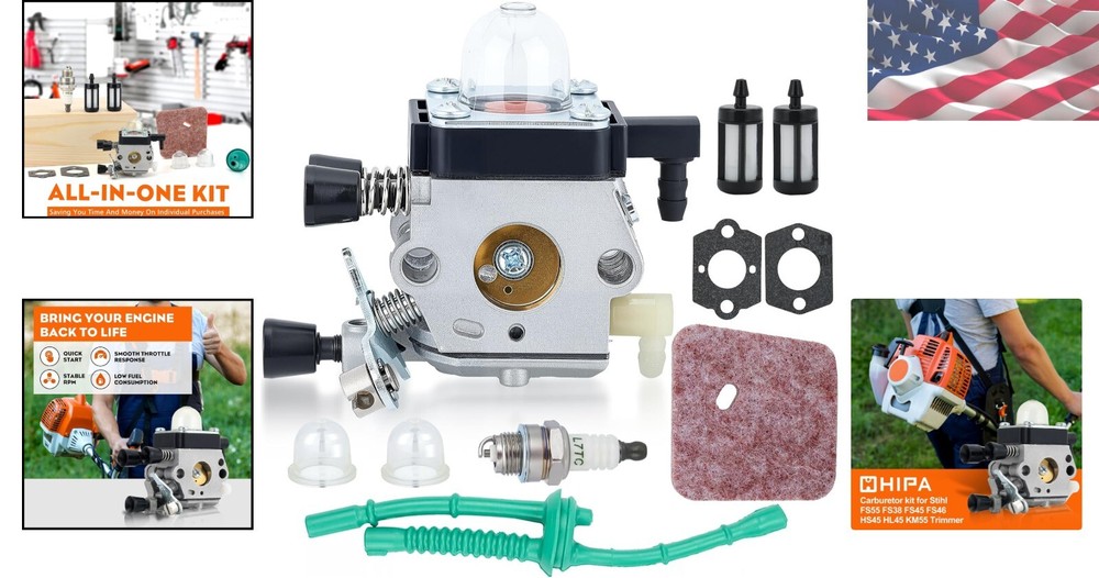 Genuine STHIL FS45 Carburetor with Complete Kit for Optimal Trim Performance < class="slides"> ‹ › ‹ › ‹ › ‹ › ‹ › ‹ › ‹ › ‹ › ‹ › ‹ › Genuine Carburetor for Optimal Trim Performance This high-performance Genuine Carburetor is meticulously crafted to ensure optimal trim performance for your STHIL FS45, FS38, and FS55 series equipment. Enhance your gardening experience with a product that sets the standard in reliability. Key Features: Precision engineered to fit STHIL models FS45, FS38, FS55, FS55R, HS45, and KM55R. All-in-one kit that saves you time and money by including everything you need. Factory-tuned for performance; arrives ready to run with no adjustments necessary. Dependable engine performance, each carburetor is wet flow tested to simulate actual engine conditions. Quality materials used; resistant to heat, corrosion, and wear with brass components, composite rubber diaphragms, and anodized aluminum body. Exact dimensions for a perfect fit: Mounting Hole Distance (Center to Center): 31mm, Throttle Bore Diameter: 14mm, Choke Bore Diameter: 12.8mm, Venturi Diameter: 11mm, Fuel Inlet Line Diameter: 4mm, Fuel Return Line Diameter: 4mm. Quality Package Includes: C1Q-S97 carburetor x1 Air filter x1 Fuel line x1 Fuel filter x2 Spark plug x1 Primer bulb x2 Gasket x2 Why Choose Our Genuine Carburetor? Take your gardening and trimming tasks to the next level with the Genuine Carburetor designed specifically for your STHIL equipment. Perfectly fitting and constructed to endure rigorous outdoor conditions, this carburetor guarantees unmatched performance, enhancing your productivity and ensuring your outdoor tools run smoothly. Don't settle for less—ensure your equipment runs smoothly with quality you can trust. Order your Genuine STHIL Carburetor today and experience the difference in performance! Shipping Free & Fast Shipping - We offer free shipping to most of the USA with a normal delivery time of 3-7 days. However, due to the current situation, additional delivery time (up to 3 weeks) may be required for some items. Alternative Carriers - We may use alternative carriers (e.g. USPS, FedEx, UPS, etc.) to ensure your package arrives safely and on time. Due to the use of multiple carriers, we are unable to provide a tracking number automatically. Handling Time - Orders are processed and shipped within 1-2 business days of receiving cleared payment. Shipping Restrictions - Shipping to Alaska, Hawaii, Puerto Rico, Guam, and other US territories may incur shipping charges or delivery restrictions. Please contact us before ordering, or your order can be refunded/cancelled. State Restrictions - There may be restrictions based on your state of purchase. For example, certain items may not be shipped to California due to state regulations. Contact for Tracking Updates - If you require tracking updates or have any concerns about the delivery of your order, please feel free to contact us, and we will be happy to assist you. Return 30-Day Hassle-Free Returns - We want you to be completely satisfied with your purchase. If you are not, you can return the item within 30 days of receiving it for a full refund or exchange. Easy Return Process - To start a return, simply contact us and we will provide you with a prepaid return shipping label and detailed instructions. Restocking Fee - There are no restocking fees for returns. However, the buyer is responsible for return shipping costs if the return is not due to a seller's error. Refund Processing Time - Refunds will be processed within 5 business days of receiving the returned item in its condition. Payment We accept all major credit cards, PayPal, and Apple Pay for your convenience. Your payment information is secure and encrypted to ensure a safe and seamless transaction. Please complete your payment within 3 days of purchase to avoid any delays in shipping. Feedback Your feedback is extremely important to us. We strive to provide the best products and customer service possible. If you are satisfied with your purchase, please take a moment to leave us a positive review. If you have any concerns or issues with your order, please contact us before leaving negative feedback. We are committed to resolving any problems and ensuring your satisfaction. Contact Us If you have any questions or concerns, please feel free to out to our customer support team. You can contact us through the eBay messaging system. We are available Monday to Friday, 9:00 am to 5:00 pm EST, and we will do our best to respond to your inquiry within 24 hours. Buy it now and enjoy a pleasant shopping experience! Compatible Product: String Trimmer Type: Carburetor Item Weight: 7 Ounces