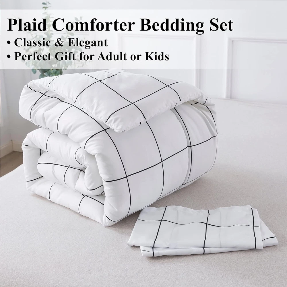 Geometric White Comforter Set - Machine Washable Queen Bedding, 3 Pieces ‹ › ‹ › ‹ › ‹ › ‹ › ‹ › ‹ › ‹ › ‹ › Geometric White Comforter Set Machine Washable Queen Bedding - 3 Pieces About the Set: Queen Grid Comforter Set includes: 1 White Grid Comforter (90" x 90") 2 Pillowcases (20" x 26") This exquisite white grid comforter set effortlessly enhances the elegance of your bedroom décor while providing warmth and comfort. Use it as a duvet insert or as a stand-alone statement piece, eliminating the hassle of additional covers. Exceptional Features: Classic white geometric large checkered pattern on both sides for a minimalist, stylish touch. Expertly crafted with exquisite stitching to prevent filling from shifting and to ensure durability. Four corner ties firmly hold your duvet in place, ensuring a smooth, polished look. Made from high-quality microfiber that is lightweight, soft, and luxurious, providing the comfort of sleeping on a cloud. Versatile Use: Modern and luxurious design fits any space: bedroom, guest room, kids’ room, RV, or vacation home. Ideal for all demographics - boys, girls, teens, students, women, and men. A tasteful choice for a birthday gift or special holiday gift - perfect for occasions like Mother’s Day, Father’s Day, Thanksgiving, and Christmas. Care Instructions: Care is easy and convenient - machine washable. Recommended to bake the comforter in sunlight and gently tap it for optimal fluffiness. Wash in cold water on a gentle cycle and tumble dry on low; allow to dry naturally. Do not bleach. Why Choose Our Geometric White Comforter Set? Elevate your sleep experience with our Geometric White Comforter Set, blending style and comfort effortlessly. Enjoy the benefits of a complete bedding solution that adds a chic urban flair to your space while ensuring a calm and cozy haven every night. Transform your bedroom into a sanctuary of elegance - order your Geometric White Comforter Set today and indulge in unparalleled comfort! Shipping Free & Fast Shipping - We offer free shipping to most of the USA with a normal delivery time of 3-7 days. However, due to the current situation, additional delivery time (up to 3 weeks) may be required for some items. Alternative Carriers - We may use alternative carriers (e.g. USPS, FedEx, UPS, etc.) to ensure your package arrives safely and on time. Due to the use of multiple carriers, we are unable to provide a tracking number automatically. Handling Time - Orders are processed and shipped within 1-2 business days of receiving cleared payment. Shipping Restrictions - Shipping to Alaska, Hawaii, Puerto Rico, Guam, and other US territories may incur shipping charges or delivery restrictions. Please contact us before ordering, or your order can be refunded/cancelled. State Restrictions - There may be restrictions based on your state of purchase. For example, certain items may not be shipped to California due to state regulations. Contact for Tracking Updates - If you require tracking updates or have any concerns about the delivery of your order, please feel free to contact us, and we will be happy to assist you. Return 30-Day Hassle-Free Returns - We want you to be completely satisfied with your purchase. If you are not, you can return the item within 30 days of receiving it for a full refund or exchange. Easy Return Process - To start a return, simply contact us and we will provide you with a prepaid return shipping label and detailed instructions. Restocking Fee - There are no restocking fees for returns. However, the buyer is responsible for return shipping costs if the return is not due to a seller's error. Refund Processing Time - Refunds will be processed within 5 business days of receiving the returned item in its original condition. Payment We accept all major credit cards, PayPal, and Apple Pay for your convenience. Your payment information is secure and encrypted to ensure a safe and seamless transaction. Please complete your payment within 3 days of purchase to avoid any delays in shipping. Feedback Your feedback is extremely important to us. We strive to provide the best products and customer service possible. If you are satisfied with your purchase, please take a moment to leave us a positive review. If you have any concerns or issues with your order, please contact us before leaving negative feedback. We are committed to resolving any problems and ensuring your satisfaction. Contact Us If you have any questions or concerns, please feel free to reach out to our customer support team. You can contact us through the eBay messaging system. We are available Monday to Friday, 9:00 am to 5:00 pm EST, and we will do our best to respond to your inquiry within 24 hours. Buy it now and enjoy a pleasant shopping experience! UPC: Not Set Model: Not Set Set Includes: Comforter,Pillowcase Material: Microfiber Features: Lightweight,Machine Wash,Stylish Design,Durable,Comfortable Theme: Geometric Character: Not Set Care Instructions: Machine Wash,Machine Wash Cold,Tumble Dry on Low Heat Department: Unisex Baby & Toddler,Kids,Teens,Adults Room: Bedroom,Guest Room,Kids Room,RV,Vacation Room Labels & Certifications: Not Set Size: Queen Type: Comforter Set Brand: Unbranded Color: White Fill Material: Polyester Pattern: Geometric Item Width: Not Set Item Length: Not Set MPN: Not Set Number of Items in Set: 3 Style: Contemporary Character Family: Not Set Insulation: All Seasons Season: Winter Country/Region of Manufacture: Not Set Closure Type: No Closure Drop Length: Not Set Thread Count: 200 or Less GSM (Grams per Square Meter): 150 to 300 Product Line: Not Set Personalize: Not Set