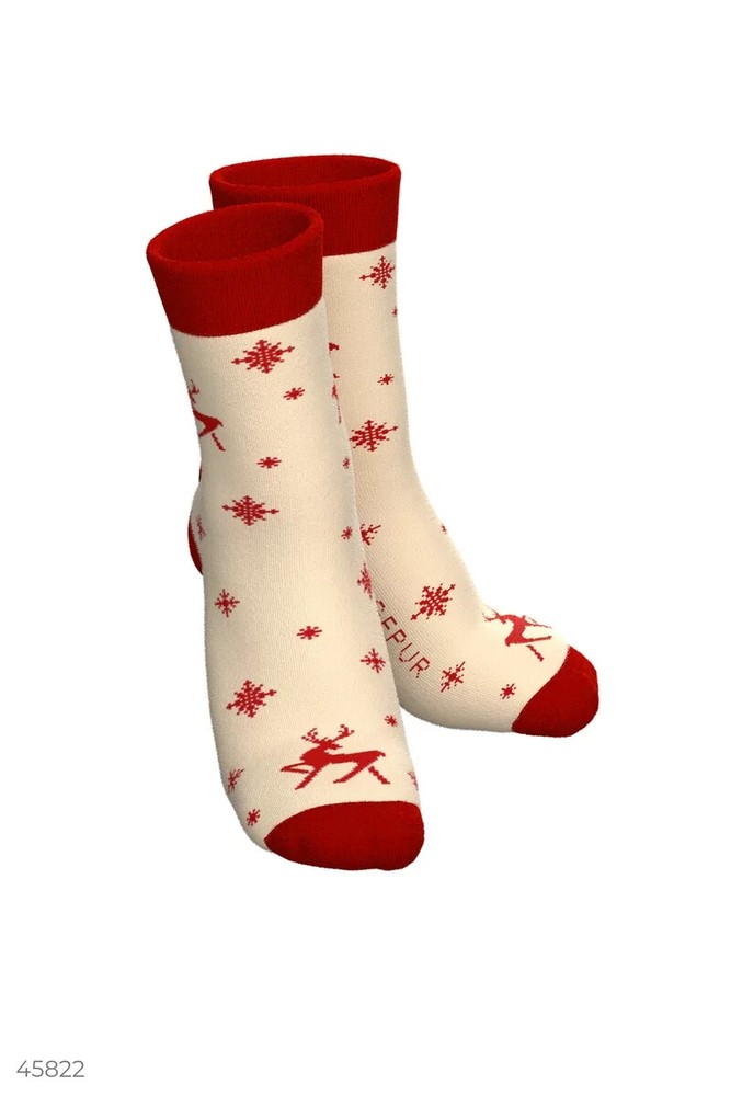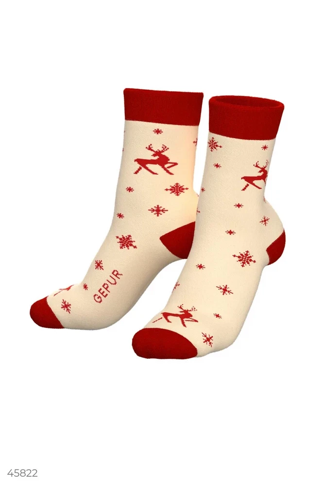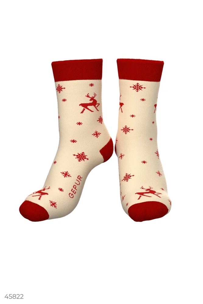Cozy high socks with a soft rubber that fits the leg comfortably. A festive print with deer creates a special mood. Socks , Red , Winter , Everyday , Office Material Cotton Collection Gepur Christmas Elevate your sock game with these cozy high socks from Gepur. Made of 100% cotton and featuring a soft rubber material, these socks are perfect for keeping your feet warm and comfortable during the colder months. The multicolor deer print adds a touch of playfulness to the socks, making them perfect for adding a pop of color to any outfit. Handmade and designed with attention to detail, these socks are available in size 9-11 and are perfect for women who appreciate quality and unique style. Whether you're looking for a gift for Christmas or simply want to treat yourself, these Gepur socks are a must-have.