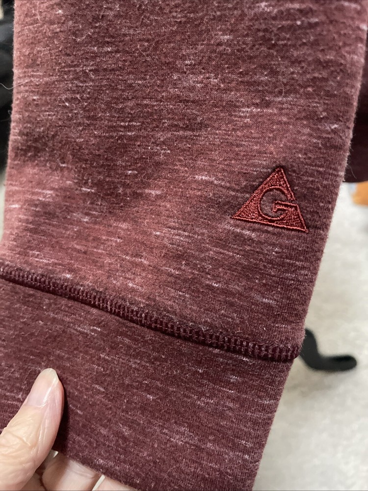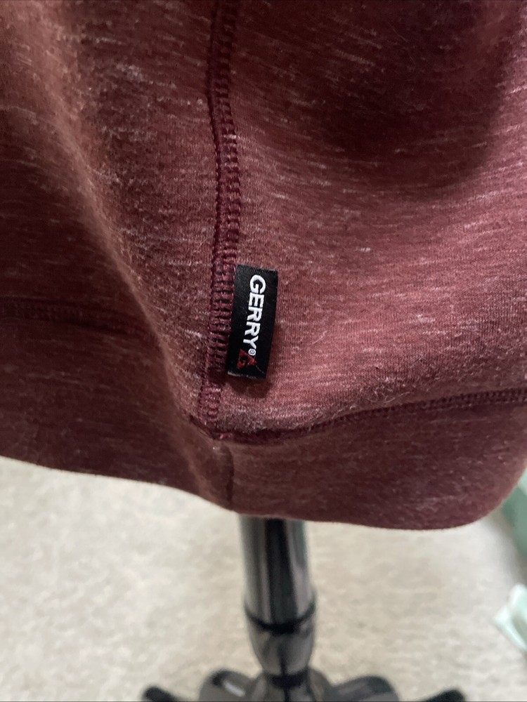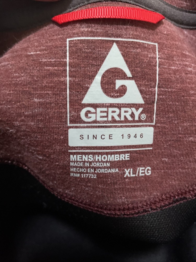 The Gerry Textured Sweatshirt in maroon is a cozy pullover featuring a crew neck and long sleeves, perfect for the winter, fall, or spring seasons. Made from a heavyweight knit fabric blend of polyester, spandex, and cotton, this sweatshirt offers both warmth and stretch for comfort. The logo accent adds a touch of style to this regular fit sweatshirt in size XL, suitable for men looking for a comfortable and stylish addition to their activewear collection.Size XL.ARMPIT TO ARMPIT IS 22 INCHES TOTAL LENGTH OF SHIRT IS 26 INCHES.Pre - Owned GREAT CONDITION Free USPS Shipping