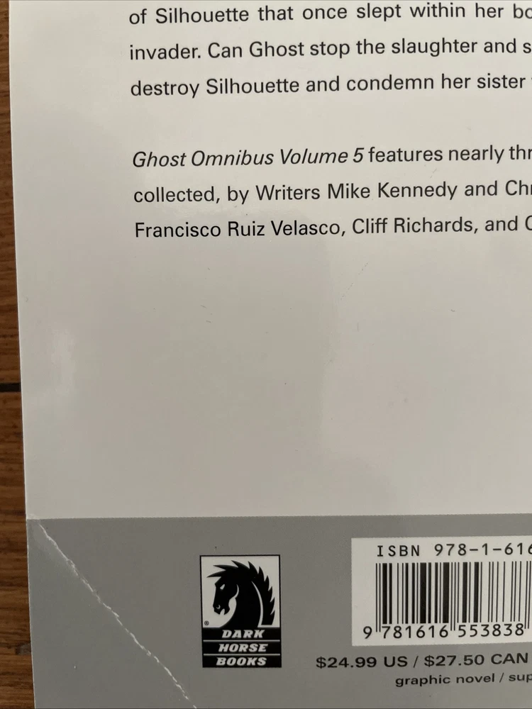 The "Ghost Omnibus #5" is a graphic novel published by Dark Horse Comics in April 2014, part of the Ghost series set in the Ghost universe. This omnibus features various artists and writers including Chris Warner and Mark Henry, with cover art by Jason Pearson. The story revolves around characters like Elisa Cameron, Kinetic, and a range of villains like Cameron Nemo and Coral King. With a mix of genres including superheroes, crime, fantasy, and horror, this one-shot issue is a must-have for fans of modern-age US comics.