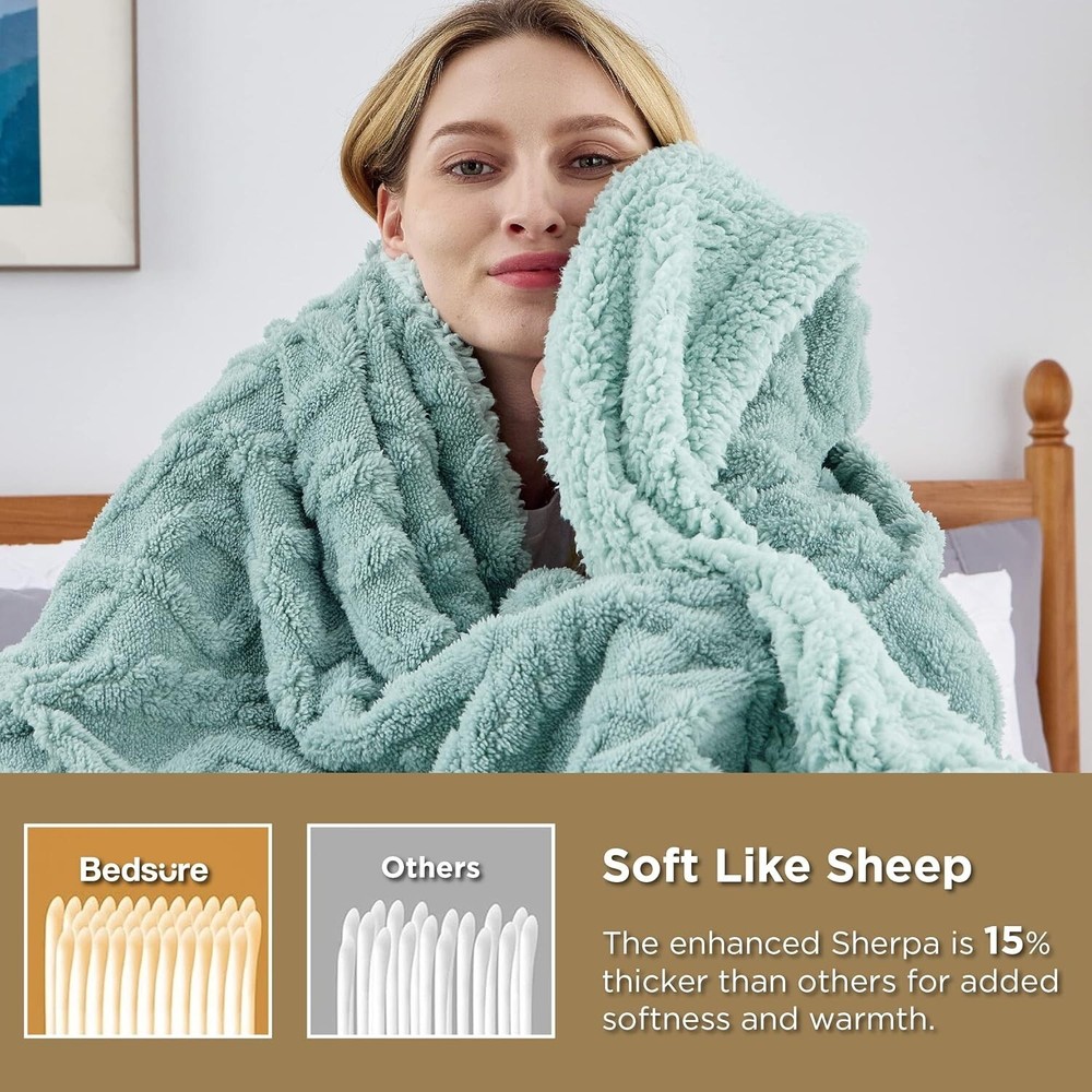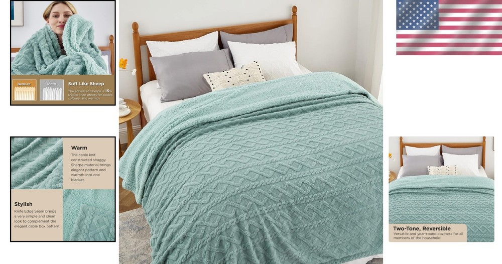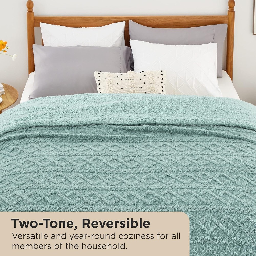 This blanket is pure luxury! The sage green color is so elegant and it feels incredibly soft on both sides. Perfect for snuggling year-round and looks gorgeous in our living room.