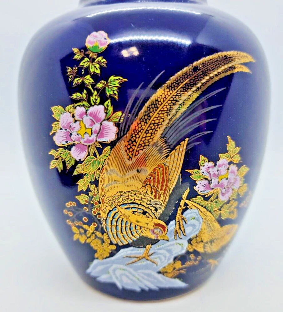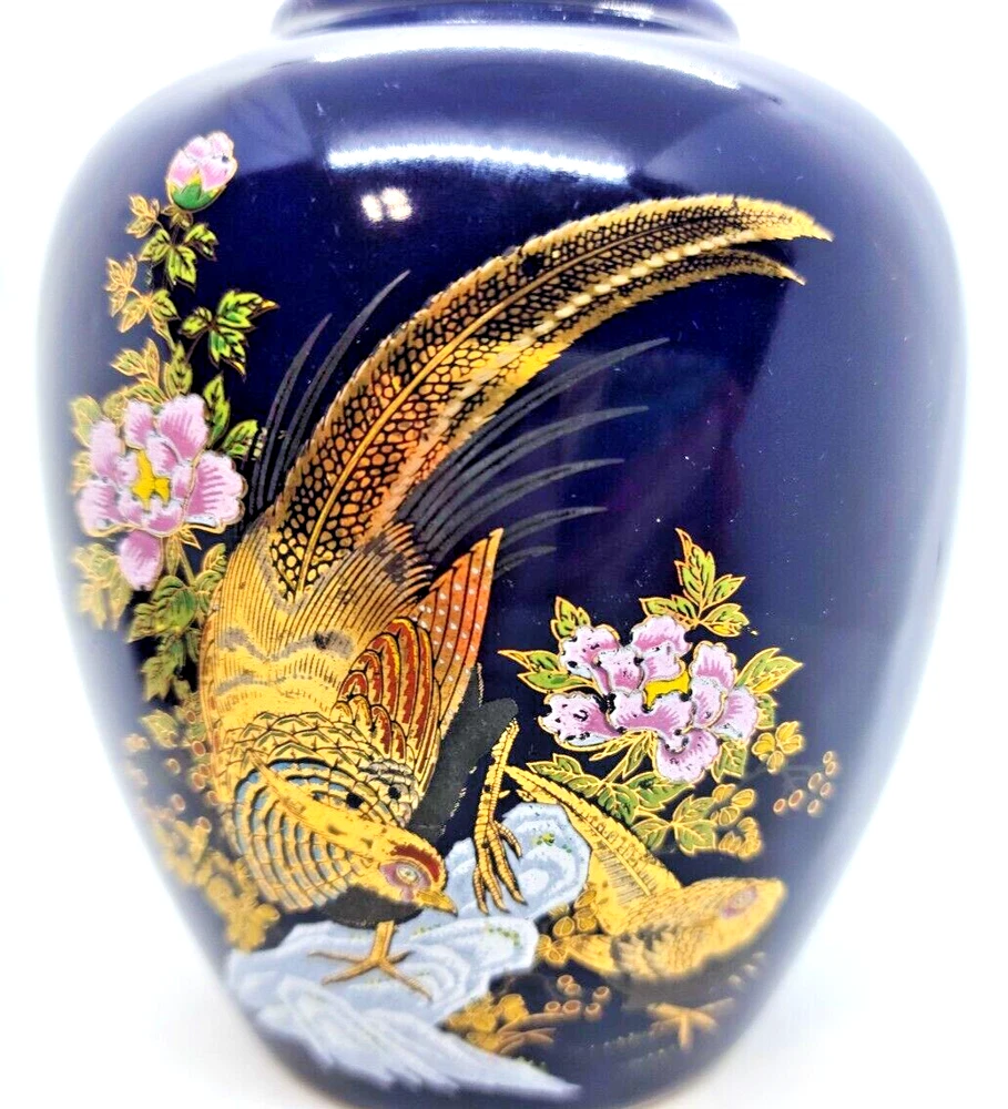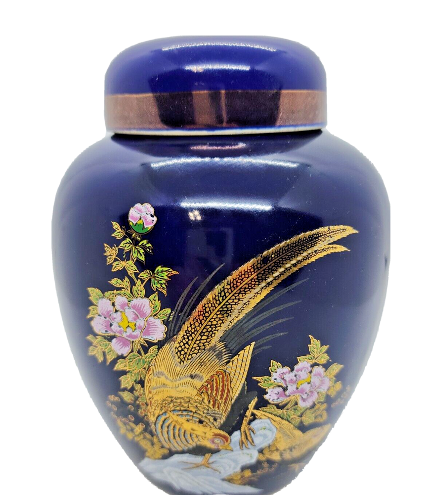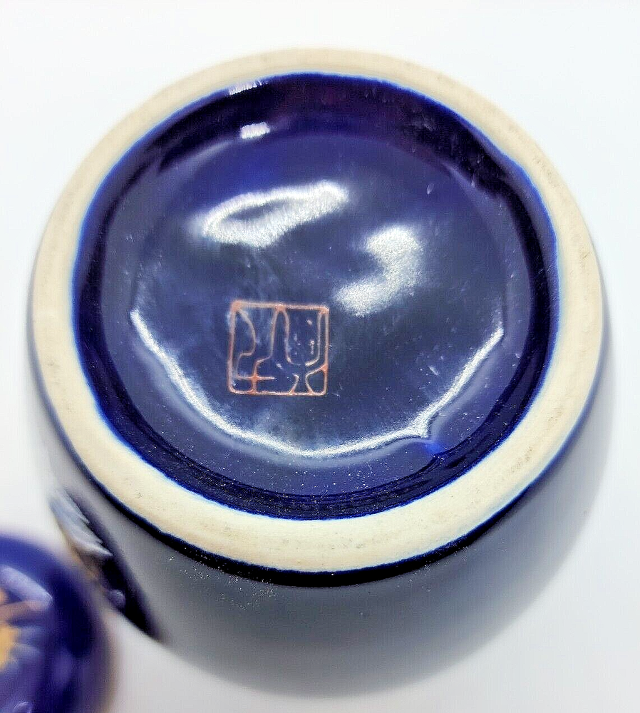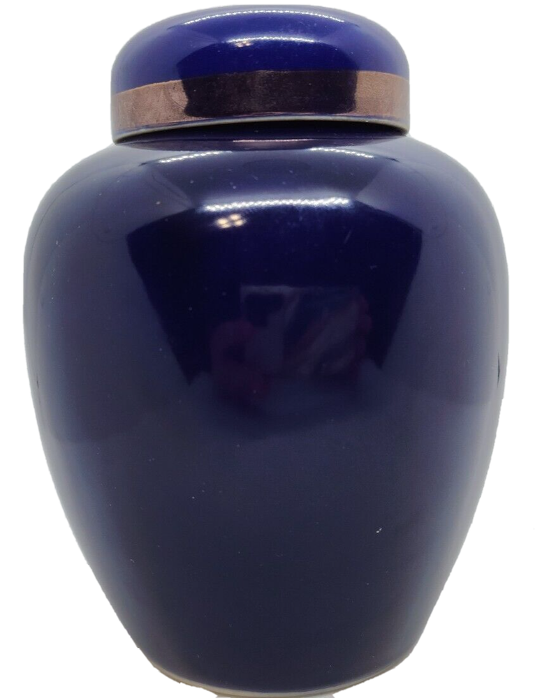 Cobalt Blue Ginger Jar with 24K GOLD Accent. Made in Japan I am the original owner and I believe I purchased it from Pier 1 Imports in 1981 Approximate measurements 4 5" wide, 6" tall No chips or cracks