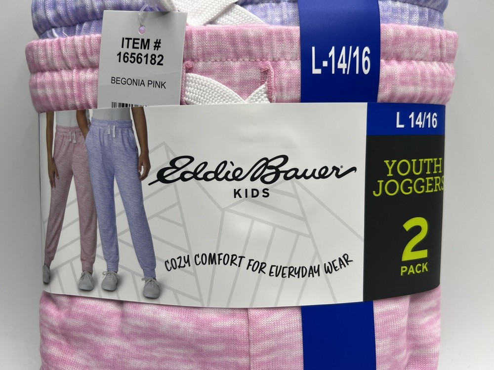 Eddie Bauer® Pink pack includes (1) Pink, (1) Purple 2 slant side pockets Tapered fit Content 95% Polyester | 5% Elastane Sizing: Inseam (in): XS = 19 | S = 22 1/2 | M = 25 | L = 28 Care Instructions: Machine wash cold with like colors Delicate cycle Only non-chlorine bleach when needed Tumble dry low Do not iron Do not dry clean Note: The digital images we display have the most accurate color possible. However, due to differences in computer monitors, there may be variations in color between the actual product and your screen. We would like to thank you for visiting our store. Because of each and every one of you, we have officially upgraded to having our own warehouse! This would not have been possible without the support that we have been shown since we opened in 2020! A huge thank you to everyone that has given us the chance to show them that we are committed to providing great products and service. We offer many different items which include an amazing toy section, apparel for the family, electronics and more. Please feel free to contact us with any questions that you may have. Customer service is very important to us as we want you to have a great shopping experience with us here at Jake and Niko! We will ship your order within one business day after receiving payment. (Monday - Friday) We will ship USPS or UPS depending on the item! Returns will be accepted for 30 days after purchase of item. No refund will be processed until we have received the item back. Item must be returned in the same condition as it was shipped! International returns are not accepted! We hope all is well with you and your family! Your friends at Jake and Niko