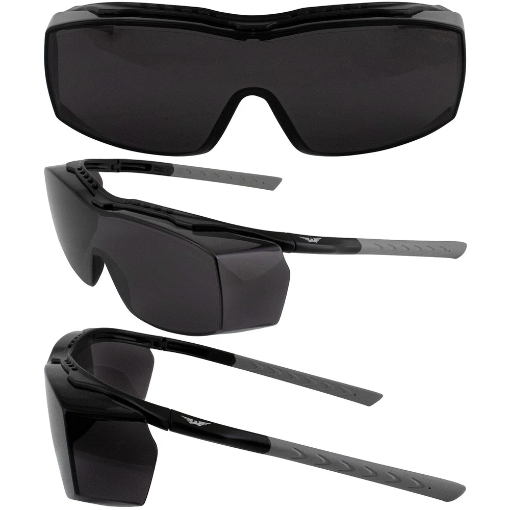 Global Vision Eyewear Eyesolates Motorcycle Fit Over Safety Glasses Smoke Lenses When you need lightweight, comfortable safety glasses strong enough to keep your peepers protected in all conditions, stock up on our Global Vision Eyewear Eyesolates Fit Over Safety Sunglasses. The one-piece lens, crafted of shatterproof polycarbonate, meets or exceeds ANSI Z87.1 safety standards for use in industrial applications. Eyesolates fits comfortably over your regular glasses so you keep your eyes protected from dust, wind, and debris without compromising your vision. Scratch-resistant coating allows these tough glasses to stand up to regular wear and tear while bend-to-shape rubber tips ensure a tailored, secure fit. Glasses are available in clear and smoke lenses. This pair features smoke lenses and provides 100% protection from the ultraviolet rays of the sun. Whether you're working on a construction site or riding your motorcycle, these glasses always work hard to keep your eyes safe. Product Details Brand Global Vision Color Smoke Size Adult Manufacturer Global Vision Mpn EYESOLATESBKSM One-piece lens design fits comfortably over your regular eyeglasses providing the protection you need without compromising your vision Accommodating design effectively shields your eyes from dust, wind, and airborne debris Shatterproof polycarbonate lenses provide 100% UVA and UVB protection from the harmful rays of the sun Glasses meet or exceed ANSI Z87.1 safety standards for use in industrial applications Scratch-resistant coating allows these tough glasses to stand up to regular wear and tear while bend-to-shape rubber tips ensure a tailored fit Check out my other items. - Powered by