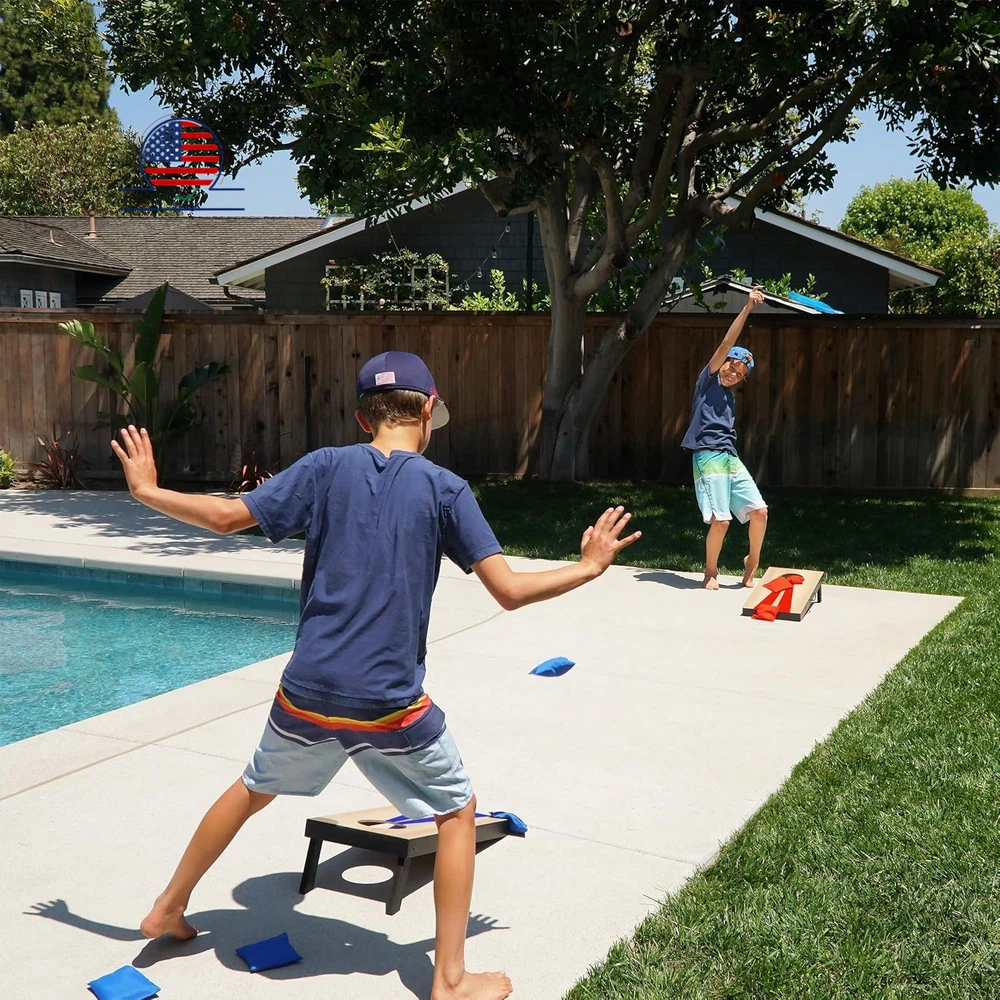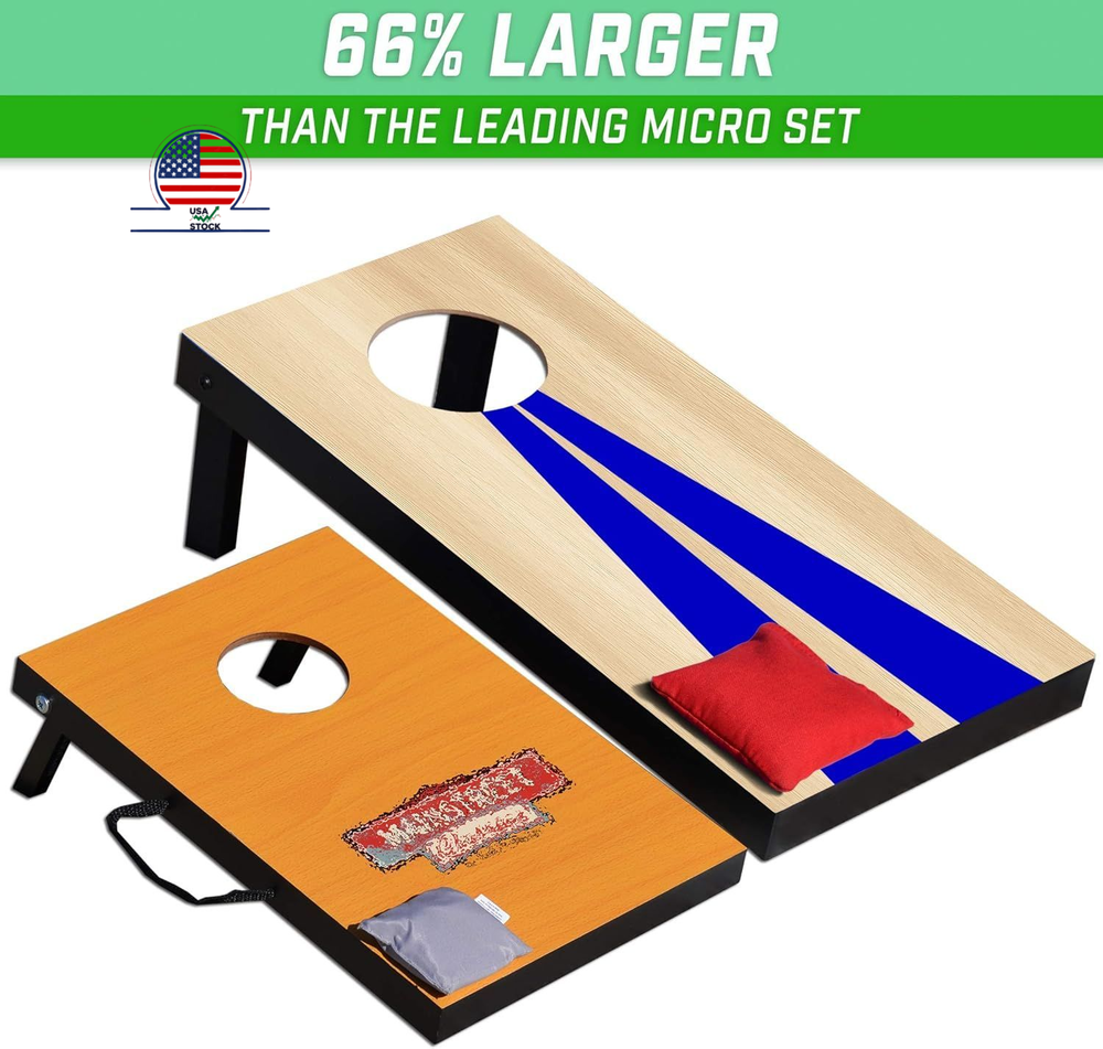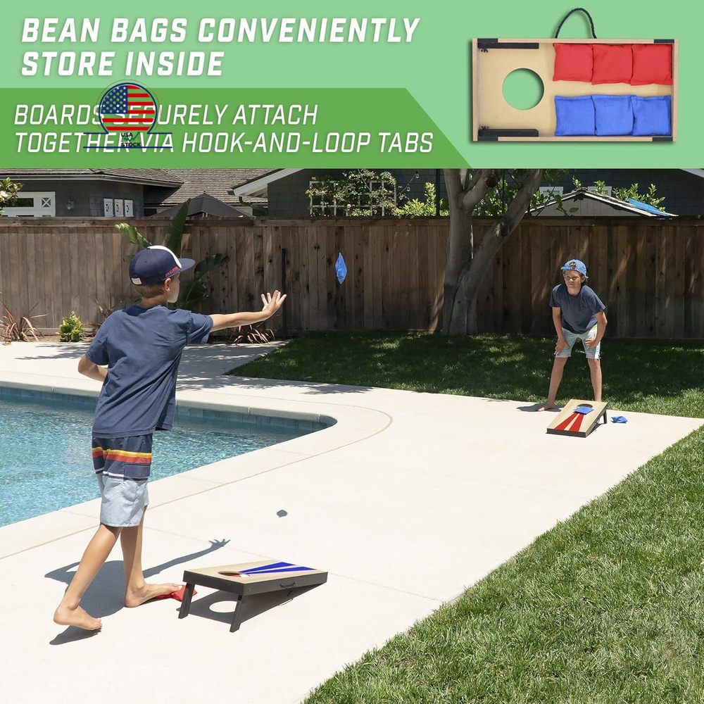 GoSports 2 ft x 1 ft Portable Size Cornhole Game Set with 6 Bean Bags - Great for Indoor & Outdoor Play (Choose Between Classic or Wood Designs) Description Features: TRAVEL SIZE: Boards measure 2 ft x 1 ft x 8 in tall UNPLUG AND GET ACTIVE: Includes 2 boards, 6 bean bags, and rules - fun for BBQS, office breaks, parties, tailgating and encouraging outdoor play FINISHED WOOD DESIGN: Cornhole boards designed with decals that look like finished solid wood for a classic style COMPACT SET: Add some fun to smaller indoor spaces like offices, dorms, and living room and a perfect set for taking on the go! STURDY AND PORTABLE DESIGN: Boards hook-and-loop together to store bags inside and are easy to transport with attached carrying handles Product Details: Material: Wood Item dimensions L x W x H: 24 x 12 x 8 inches Style: Wood Design Item Weight: 10.93 Pounds Color: Wood Design Brand: GoSports League: Cornhole Game Number of Players: 2 Specific Uses For Product: Indoor,Outdoor,Outdoor Play,Play Number of Pieces: 8 Manufacturer: P&P Imports LLC Item Package Dimensions L x W x H: 25.25 x 13.5 x 5 inches Package Weight: 5.15 Kilograms Item Dimensions LxWxH: 24 x 12 x 8 inches Brand Name: GoSports Model Name: Portable Cornhole Sets Suggested Users: unisex-teen Part Number: CH-03-MDF-WOOD Included Components: (6) Bean Bags, (2) Cornhole Boards Size: 24 x 12 x 8" Material: Wood Item dimensions L x W x H: 24 x 12 x 8 inches Style: Wood Design Item Weight: 10.93 Pounds Color: Wood Design Handling We will ship all orders within 3 business day of payment. Delivery We Do Not Ship Outside of the Continental US. Return Policy Free fast shipping. Feedback We take our reputation seriously, we buy and sell online, so we understand the value of trust. If you are unsatisfied with your order, please contact us and we will work with you to resolve it to your satisfaction.