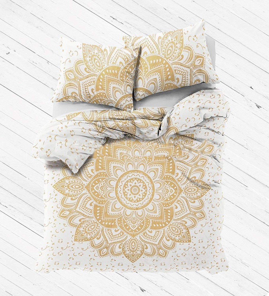 !! Item Specification !! Item :- Indian mandala White Gold Flower duvet cover with pillow cover. Material :- 100% Cotton fabric. Prints :- Hand screen printed. Queen size duvet :- 89 '' x 82'' inch (223 x 208 Cm) Approx. Pillow cover ( each ) :- 18'' x 28'' inch ( 45 X 71 Cm ) Approx. Washing :- Dry clean Only. !! Item Description!! Beautiful Indian screen printed cotton mandala duvet , quilt , doona cover with matching pillow cover.These covers are completely screen printed in traditional Indian method and takes around 2 to 3 days to complete. 100%cotton.This duvet cover can also be used as: - Bedspread - Duvet cover - Bed cover - Dorm decor - Bedding sheet - Quilt cover - Doona cover - Tapestry or a wall decor. Add an ethnic feel to your room with this cotton handmade mandala bedspread, duvet cover. Go for a dramatic makeover of your room and this covers would become a conversational piece of art. This duvet cover made from two thin layer of cotton mandala printed fabric make this piece of art irresistible and also very comfortable.A must have in any season for all ethnic savvy ones. This is a rare beauty not to be missed, a genuine collector's item & the result of masterly workmanship. This duvet cover are completely screen printed in traditional Indian method and takes combination of skill set, patience & lot of time to complete. 100%cotton - This quilt cover are printed, not quilted or woven. They are hippie Indian mandala bedding bed cover. Made from two thin layer of cotton mandala printed fabric make this piece of art irresistible and also very comfortable !! Shipping Policy!! 1. We Ship Within 1-2 Business Days After Receiving Order/ Payment. 2. Country's Custom Duties, Taxes & Charges are to be paid by buyer if there are any. !!Payment Policy!! 1. We Will Accept Payment Via Payoneer Only. 2. International Buyers are responsible for their Country Custom Duties & other charges. !!Return Policy!! 1. Returns Accepted From Buyers Within 30 Days of Delivery. 2. Shipping Charges will be made by Buyers When Return. !!Other Products!! We are also selling Ottoman Cover, Cushion Cover, Pillow Cover, Pouf Cover, Tapestry Wall Hanging and many more under Home Decor Category. "Customer is a king" seller depends on you, so your positive feedback is extremely valuable to us. If you have any concerns about your order, please contact us through an eBay message to resolve any issues before leaving negative feedback or opening a dispute. We will try our best to resolve it. Our goal is to give the best service to all customers. We ship the product after performing the high quality check .We are always committed to doing our best” Thank You. Have A Nice Day. Perfect Gift for any Occasion