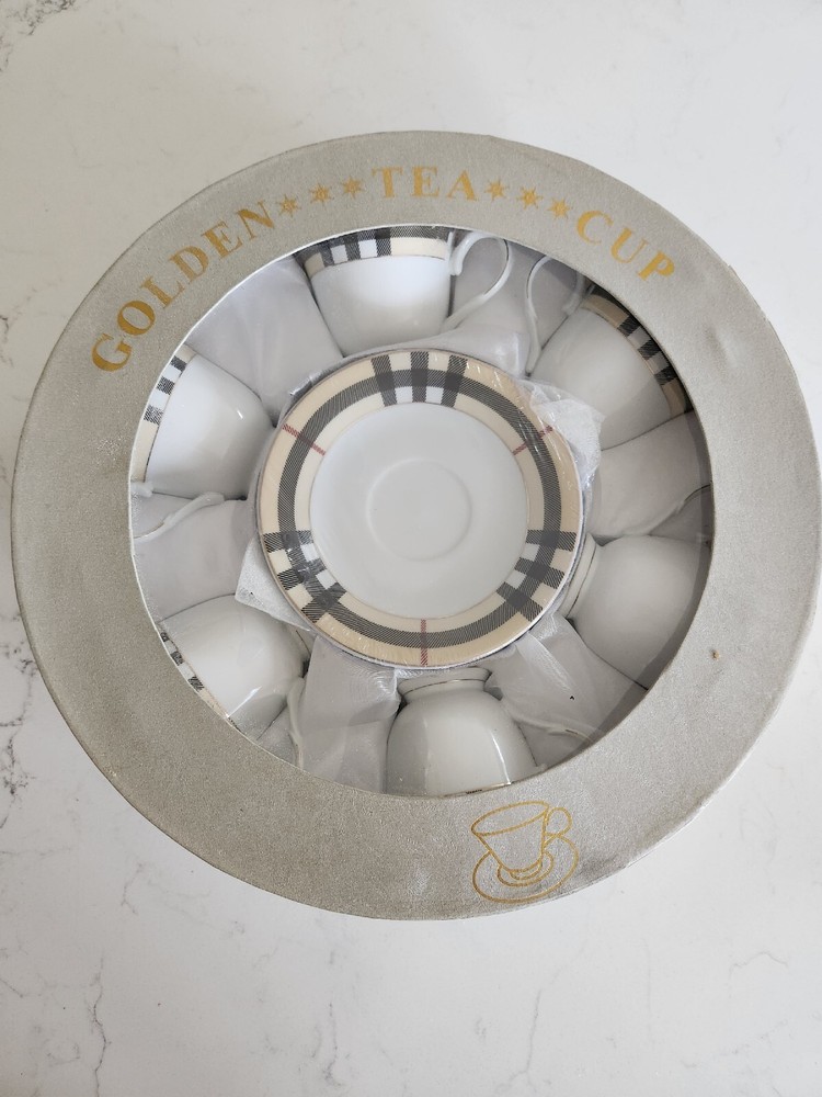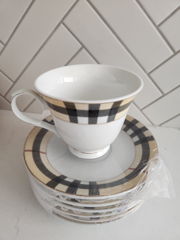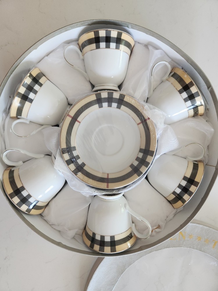 Gold Star Imports Golden Coffee Cup Set Burberry Pattern by German Design...