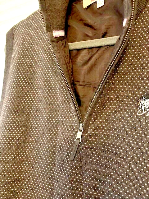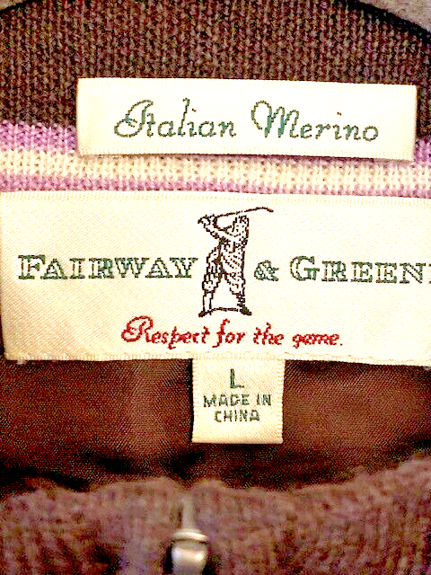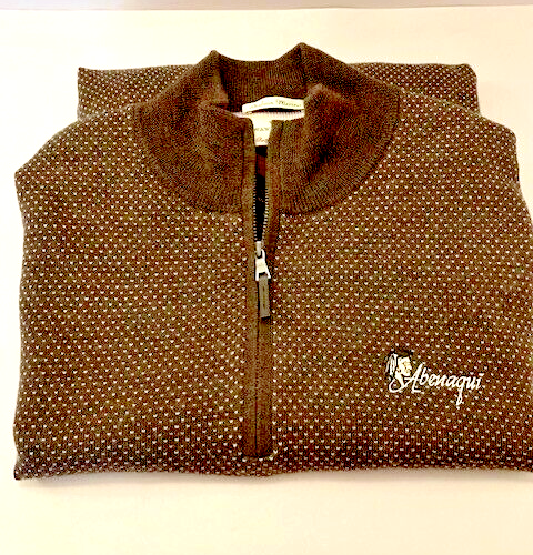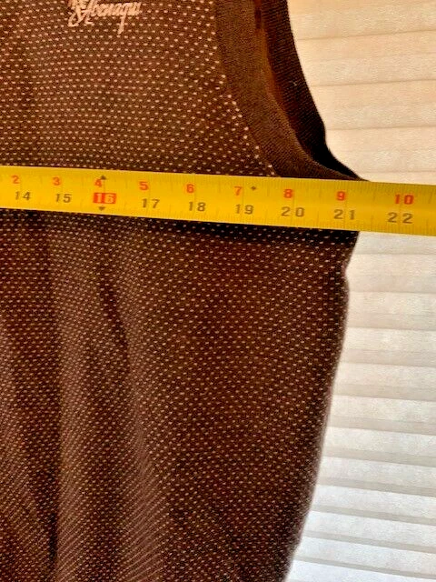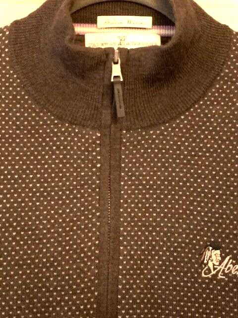 Fairway Greene Golf Wind Vest Italian Merino Brown Wool Lined Zip Country Club with LOGO Retail Value up to $320.00 Light weight and warm. Quality Italian Soft Merino Wool Wind Vest Mens Size Large Pit to Pit 21" Length 28" Brown with white knit pattern. Quality construction fully lined. Has Logo of Abenaqui Country Club of Rye Beach New Hampshire. Please review photos for detailed sized and condition. 100% Merino wool, this vest is perfect for any season and offers lightweight, breathable comfort. The 1/4 zip closure Thank you! Happy to combine shipping, visit KEEPKLASSY for more options. Please reach out with questions.