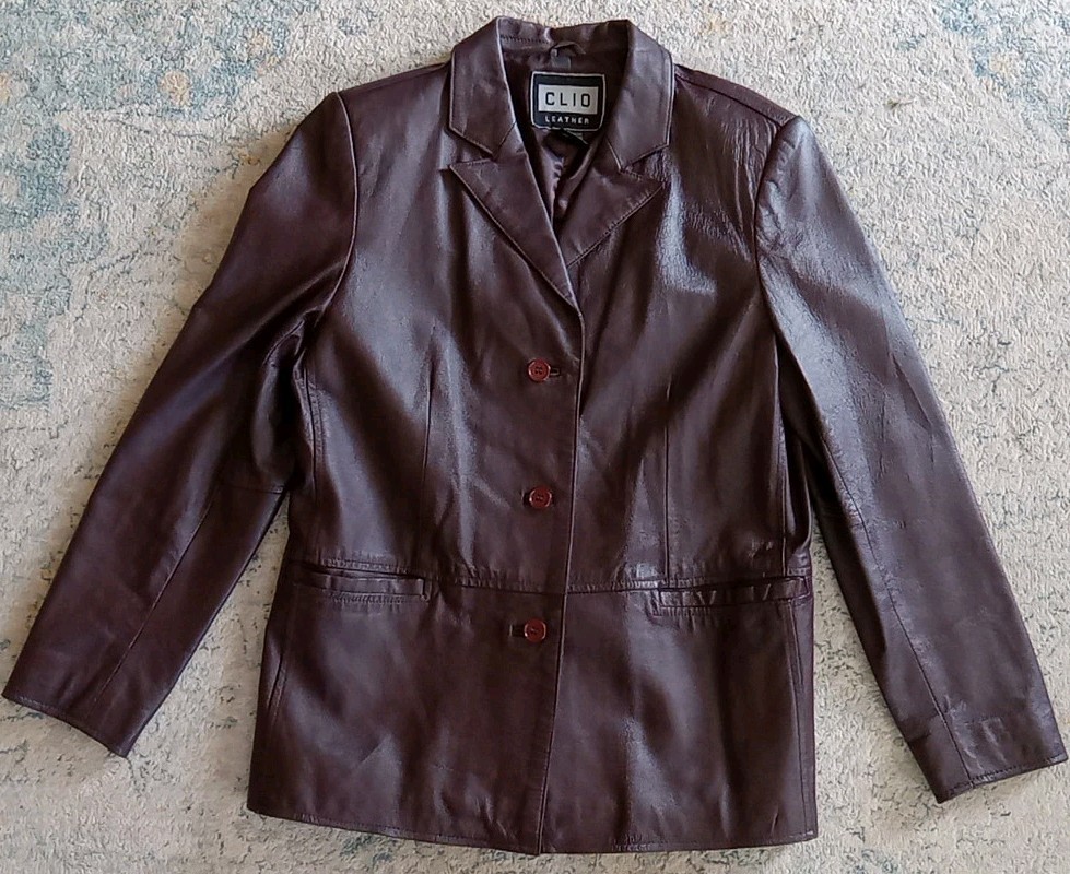 This stunning vintage Clio leather jacket is a must-have for any stylish woman. The jacket features a classic brown color, made from high-quality leather, and has a mid-length cut with a collared neckline and long sleeves. The jacket is perfect for any occasion whether you are going out for a casual ride, traveling, or even heading to a party or a business meeting. The jacket is designed with an authentic vintage style and has several features that make it unique, including a button closure, soft shell, lined interior, shoulder pads, and is wind-resistant and water-resistant. The jacket is available in a women's size small and has a regular fit. The jacket is perfect for all seasons, whether it's winter, summer, fall, or spring. The garment care is simple, and you can maintain its beauty by using special leather cleaner only.