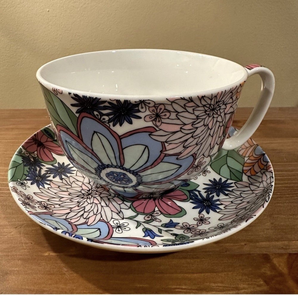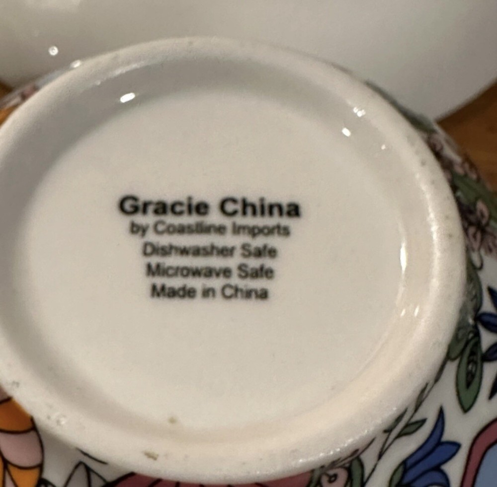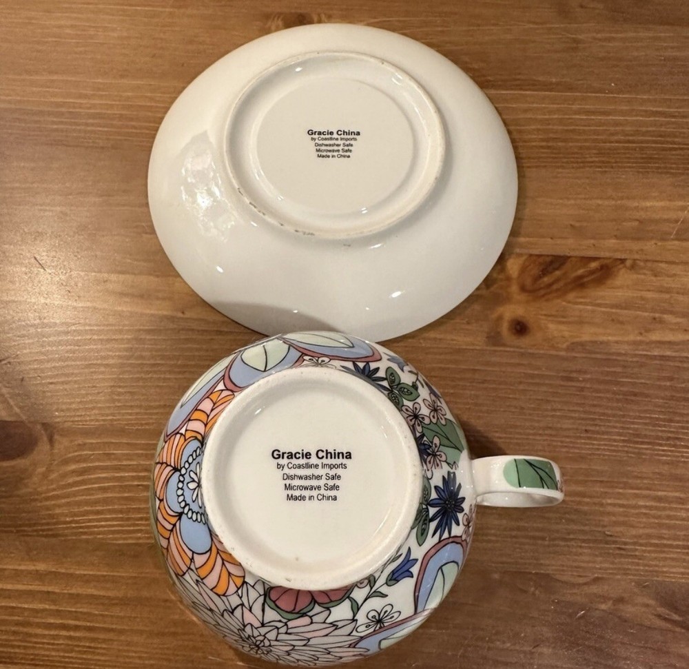 This is a Gracie China Cup & Saucer Colorful flowers design Saucer diameter 6 1/2 inches Cup diameter 4 1/2 inches Holds approx 14 oz Please contact me with any questions
