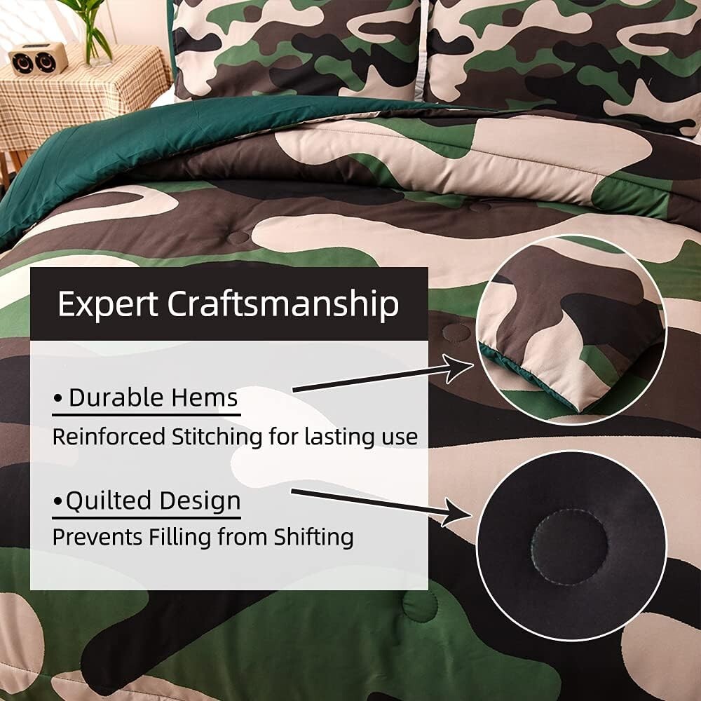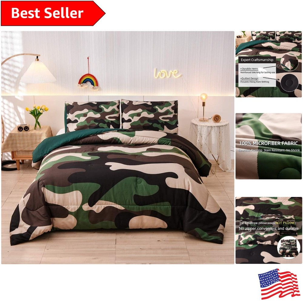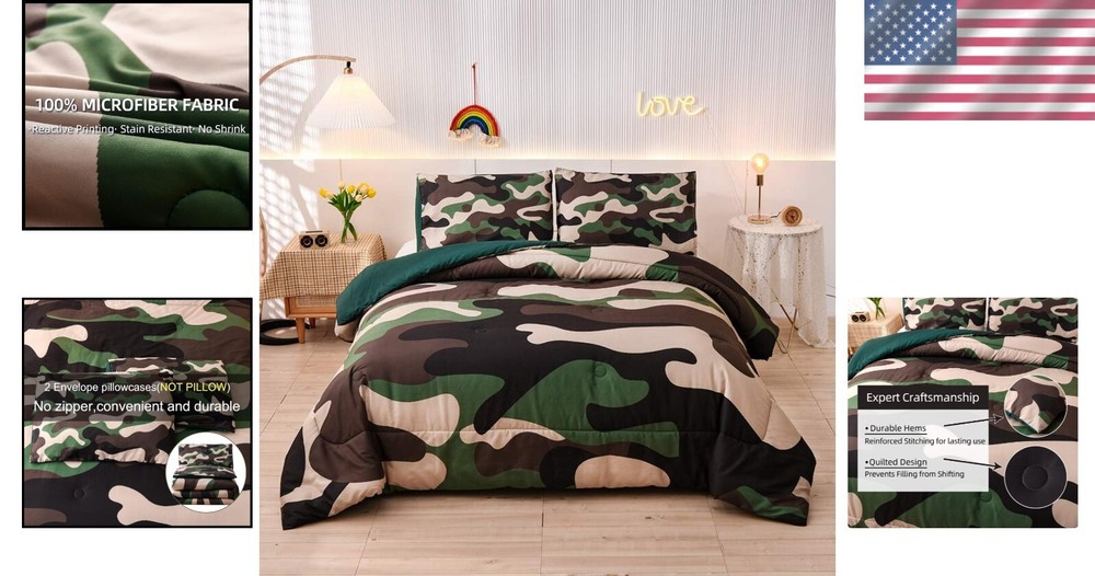 Green Camouflage Bedding Set - Cozy 3-Piece Comforter Ensemble for Kids & Adults ‹ › ‹ › ‹ › ‹ › ‹ › ‹ › ‹ › ‹ › ‹ › ‹ › Green Camouflage Bedding Set - Cozy 3-Piece Comforter Ensemble for Kids & Adults Features: Hot Camouflage Elements make your bedroom colorful and playful High quality polyester with ultra soft microfiber inner fill Durable, breathable, hydrophilic, cozy, fade-resistant and easy to wash 3 pcs Queen Comforter set includes one queen comforter (228x228cm/90x90inch) and two pillow shams (50x70cm/19x27inch) Hidden bar tack technique to resist filling from moving out Benefits: Transform your bedroom into a magazine-worthy space Suitable for children, adults, or anyone who loves Camouflage Games Easy to care for and maintain Comfortable and cozy for a good night's sleep Comes with everything you need for a complete bedding set Why choose our Green Camouflage Bedding Set? Upgrade your bedroom with our Green Camouflage Bedding Set, featuring hot Camouflage Elements that will make your space look vibrant and fun. Made from high-quality materials, this set is durable, cozy, and easy to wash. With a 3-piece ensemble including a queen comforter and two pillow shams, you'll have everything you need for a stylish and comfortable bedroom. Don't settle for boring bedding - choose our Green Camouflage Bedding Set for a unique and playful touch to your bedroom decor. Order now and experience the comfort and style of our Green Camouflage Bedding Set! Shipping Free & Fast Shipping - We offer free shipping to most of the USA with a normal delivery time of 3-7 days. However, due to the current situation, additional delivery time (up to 3 weeks) may be required for some items. Alternative Carriers - We may use alternative carriers (e.g. USPS, FedEx, UPS, etc.) to ensure your package arrives safely and on time. Due to the use of multiple carriers, we are unable to provide a tracking number automatically. Handling Time - Orders are processed and shipped within 1-2 business days of receiving cleared payment. Shipping Restrictions - Shipping to Alaska, Hawaii, Puerto Rico, Guam, and other US territories may incur shipping charges or delivery restrictions. Please contact us before ordering, or your order can be refunded/cancelled. State Restrictions - There may be restrictions based on your state of purchase. For example, certain items may not be shipped to California due to state regulations. Contact for Tracking Updates - If you require tracking updates or have any concerns about the delivery of your order, please feel free to contact us, and we will be happy to assist you. Return 30-Day Hassle-Free Returns - We want you to be completely satisfied with your purchase. If you are not, you can return the item within 30 days of receiving it for a full refund or exchange. Easy Return Process - To start a return, simply contact us and we will provide you with a prepaid return shipping label and detailed instructions. Restocking Fee - There are no restocking fees for returns. However, the buyer is responsible for return shipping costs if the return is not due to a seller's error. Refund Processing Time - Refunds will be processed within 5 business days of receiving the returned item in its original condition. Payment We accept all major credit cards, PayPal, and Apple Pay for your convenience. Your payment information is secure and encrypted to ensure a safe and seamless transaction. Please complete your payment within 3 days of purchase to avoid any delays in shipping. Feedback Your feedback is extremely important to us. We strive to provide the best products and customer service possible. If you are satisfied with your purchase, please take a moment to leave us a positive review. If you have any concerns or issues with your order, please contact us before leaving negative feedback. We are committed to resolving any problems and ensuring your satisfaction. Contact Us If you have any questions or concerns, please feel free to reach out to our customer support team. You can contact us through the eBay messaging system. We are available Monday to Friday, 9:00 am to 5:00 pm EST, and we will do our best to respond to your inquiry within 24 hours. Thank you for supporting our small family business!