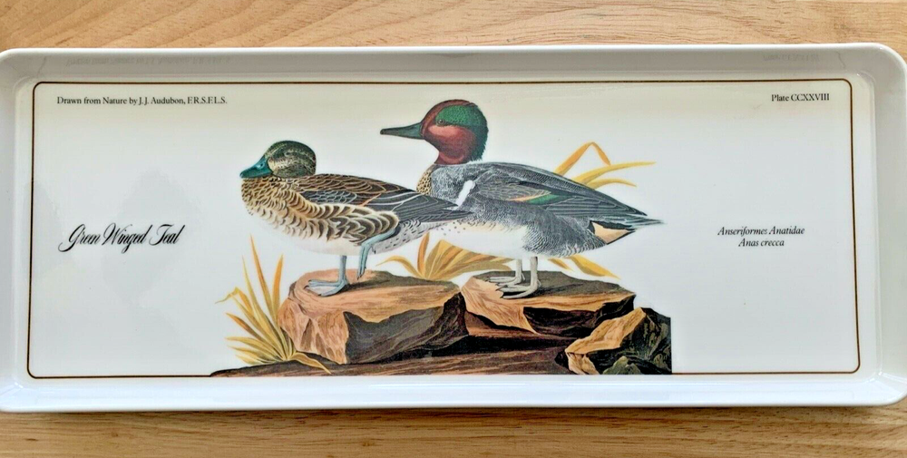 Green Winged Teal Mallard Duck 15" X 5.75" Serving Tray Design Imports Italy Hello! This is a melamine plate CCXXVIII by Design Imports LTD Providence RI Made in Italy. Measures 15" by 5.75". Vintage condition with small amount of cosmetic wear but in excellent condition. S/H $10.50 Please feel free to email me with any questions and thanks for stopping by!