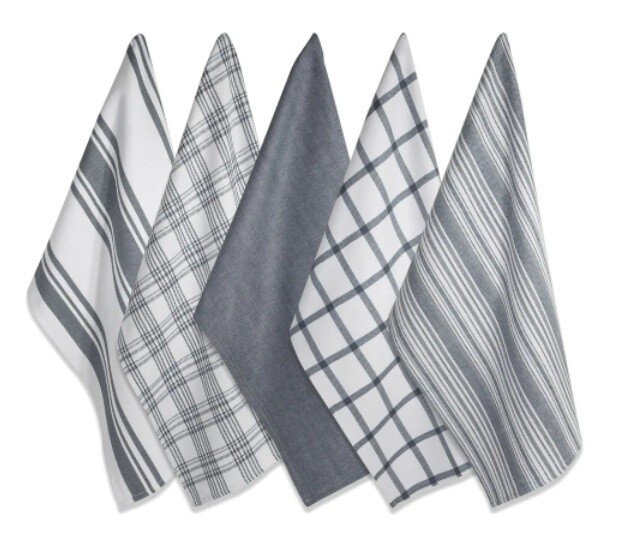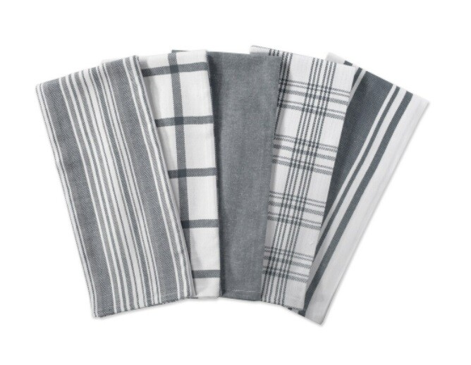 Keep your kitchen clean with this handy set of woven dishtowels. The quick-drying, lint-resistant cotton construction is highly absorbent to dry dishes or clean up spills, and the over-sized design is great for larger tasks. This set contains five towels with different patterns so you can mix and match them for a decorative look between uses. Country of Origin: Pakistan Ships to the lower 48 states only. No local pickup. Returns accepted for 30 days.