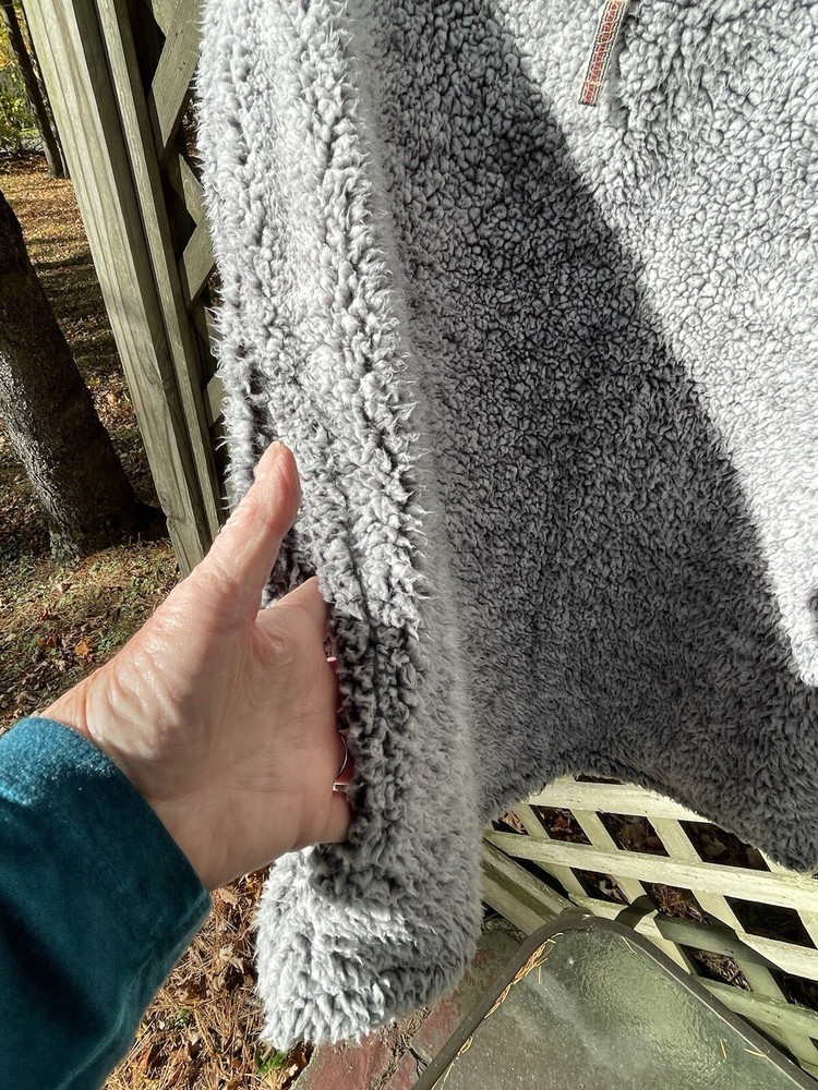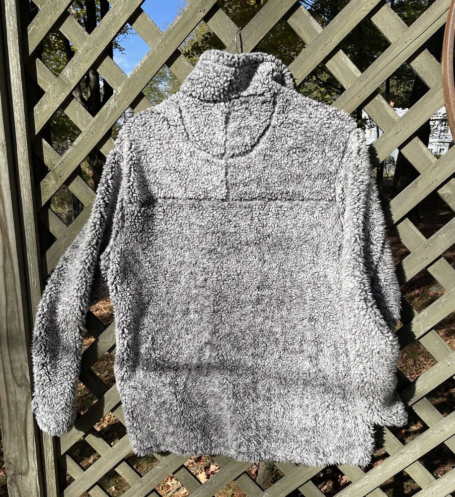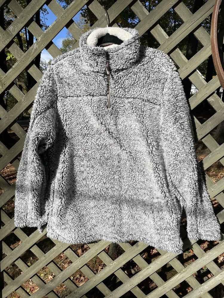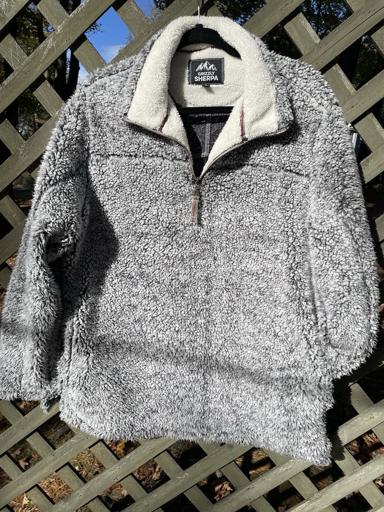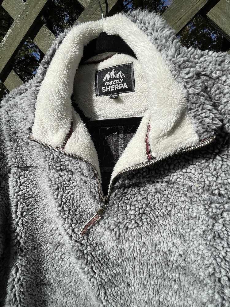 Stay warm and stylish with this Grizzly Sherpa pullover in size L. The high neck and 1/4 zip closure provide both comfort and convenience, while the long sleeves and fleece material keep you cozy during the colder seasons. The gray color and solid pattern add a touch of sophistication to your wardrobe, and the pockets make it easy to carry your essentials. This unisex sweatshirt is perfect for all seasons and is wrinkle-resistant for easy care.