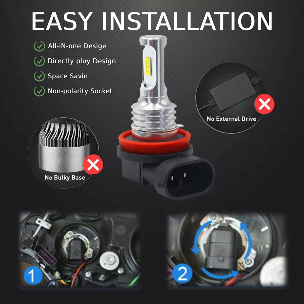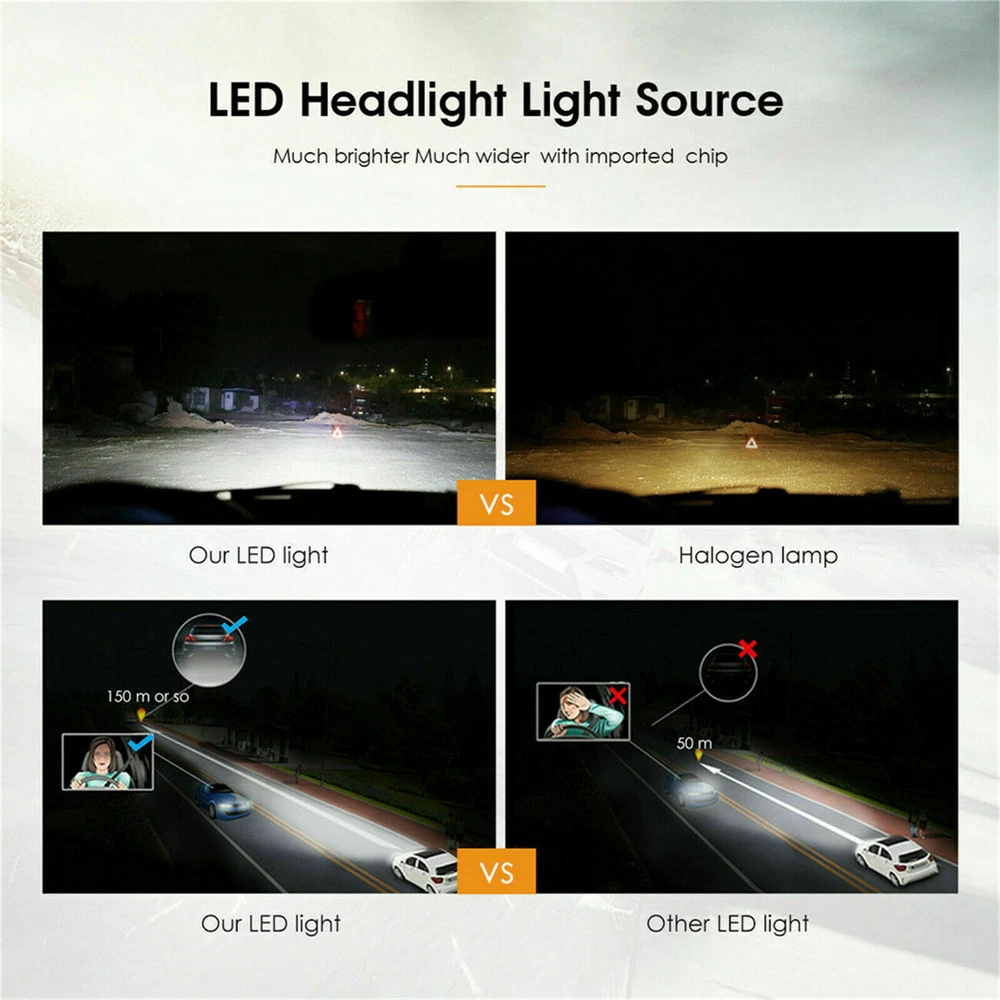 The compatible vehicle list shows only partial cars due to the ebay limits, if your car plug is same with 9005(HB3)+H11(H8,H9) , the item will fit your car. Features: 1.Designed to enhance your visibility and driving safety at night and bad weather. 2.High Power CSP LED light source, super bright without blind zone. 3.Efficient cooling system ensures maximum Headlight light performance and appropriate working temperature. 4.Built-in smart IC chip speed up heat transfer provides intelligent temperature control and allows for instant start. 5.IP67 waterproof and high temperature resistant, withstand extreme weather conditions. 6.Easy installation without any modification or additional wiring, plug and play. Specifications: * Condition: 100% Brand New * Light Source: Customized CSP LED chips * Material: Aviation Aluminum + ABS * Color Temperature: 6500K White * Working Voltage: DC 9-30V * Output Power: 50W Per Bulb,Total 100W Per Pair * Number of Bulbs: 4 * Waterproof Rate: IP67 * Luminous Flux: 10000LM/per bulb, 20000LM/per Pair * Working Temperature: -40℃ - +80℃ * Bulb Type: 9005(HB3)+H11(H8,H9) *Fanless: yes, no noise * Beam Type: Headlight,Foglight,DRL(daytime running lights) * Beam Angle: 360 Degrees *Certified by: CE & ROHs * Lifespan: Over 50,000 hours * Heat Dissipation Principle: Aluminum Radiator * Fitment Type: Direct Replacement * Placement on Vehicle: Front, Left, Right *CANBUS ERROR FREE: No. For most vehicles, just directly plug and play.Yet for some vehicles with CAN-BUS system, it may require install decoder or load resistor to avoid hyper flash or fast blinking. Package Included: 2x 9005 LED Headlights 2x H11 LED Headlights Note: 1.Please check the size of your bulbs on your vehicle before purchasing. 2.Please make sure the headlight housing has enough space for installation before purchasing. 3.Professional installation is highly recommended.If you have any questions, please feel free to contact us.