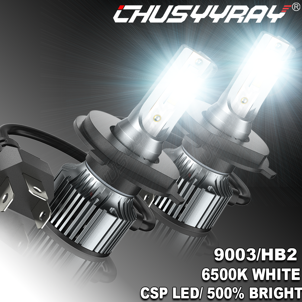 9003 LED Bulbs, 9003/H4 LED Light Bulb 10000LM 500% Bright 6500K Xenon White 2024 Upgraded 1:1 Size Plug and Play Features: Super Brightness: 1.Ultra bright, 20W 10000LM per bulb, immediate zero warm-up time. 2.3570 Customized CSP SMD 6500K light source, high brightness, high illumination, good paving effect,No Dark sopt,No Shadow. 3.Built-in anti-interference, EMC. IP67 rated waterproof and dustproof. Fast Cooling: 1.High grade aluminum alloy shell fan design for faster cooling. Efficiently heat dissipation. 2.Powerful, high-speed double ball-bearing fan speed up to 12,000RPM/Min. Twice faster than generic hydraulic fans. Wide Application: 1. Universal Fit for Cars SUV ATV and motorcycle. 2. Replacement for Headlight High Beam Low Beam fog light, or DRL(daytime running light) etc. Package Included: 2 x 9003 LED Headlight Bulbs 1 x Retail Box