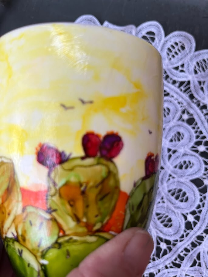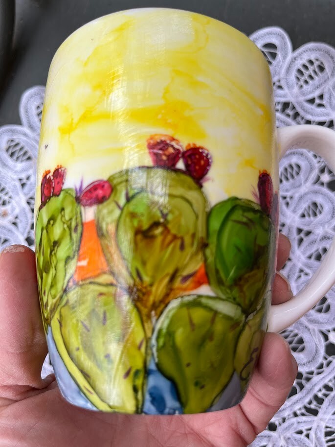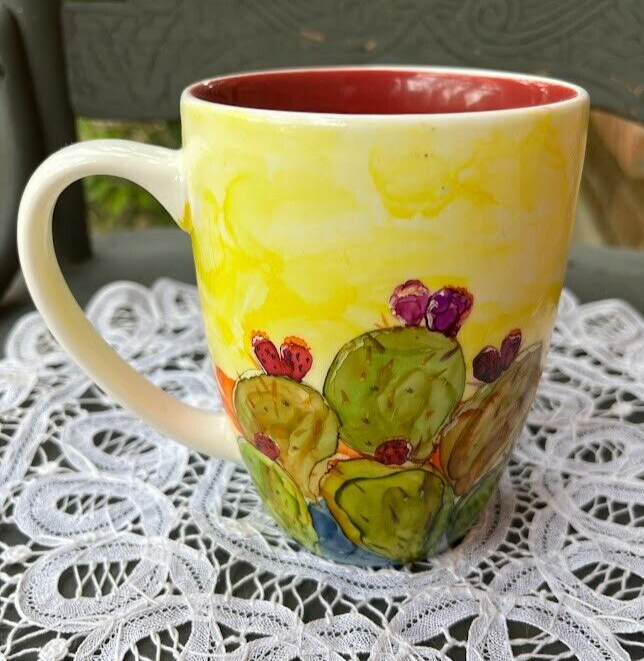 Previously Enjoyed ~ Gently Used ~ HAND PAINTED "CACTUS" MAINSTAYS™️ RED INTERIOR COFFEE MUG ~ SIGNED BY ARTIST ~ See Condition Description & Photos ~ CHECK OUT MY OTHER HAND PAINTED ITEMS ~ From a Smoke Free Home! I strive to give an accurate description of my items. Pictures are an accurate depiction of the item. Please REVIEW the description and pictures carefully. Please ask any questions before you purchase the item. Be sure to Add me to your FAVORITES List! CHECK OUT MY STORE! {11/8}