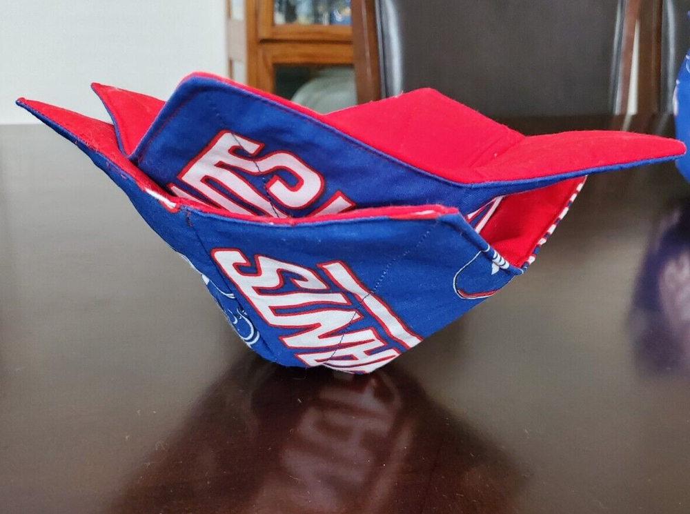 HANDMADE COZY BOWLS , GIANTS, THE BOWL COZY IS 100% COTTON 100% DOUBLE COTTON BATTING COTTON THREAD, AND MICROWAVE SAFE SIMPLE PLACE YOUR BOWL OF FOOD IN THE COZY AND REHEAT AS USUAL, REMOVE THE BOWL WITH THE COZY TO AVOID BURNING YOUR FINGERS. ALSO GREAT FOR COLD ICE CREAM BOWLS. REVERSIBLE COZY IS MACHINE WASHABLE. Brand New Photo above is the actual item. Personally Handmade by myself. Shipped with usps first class mail. 30 day returns no questions. Shipped Within the 50 USA states. Please visit my ebay store. If you have any questions please feel free to E-Mail me prior to purchase. Should any issues arise after the purchase please message me through eBay and we can find a resolution.