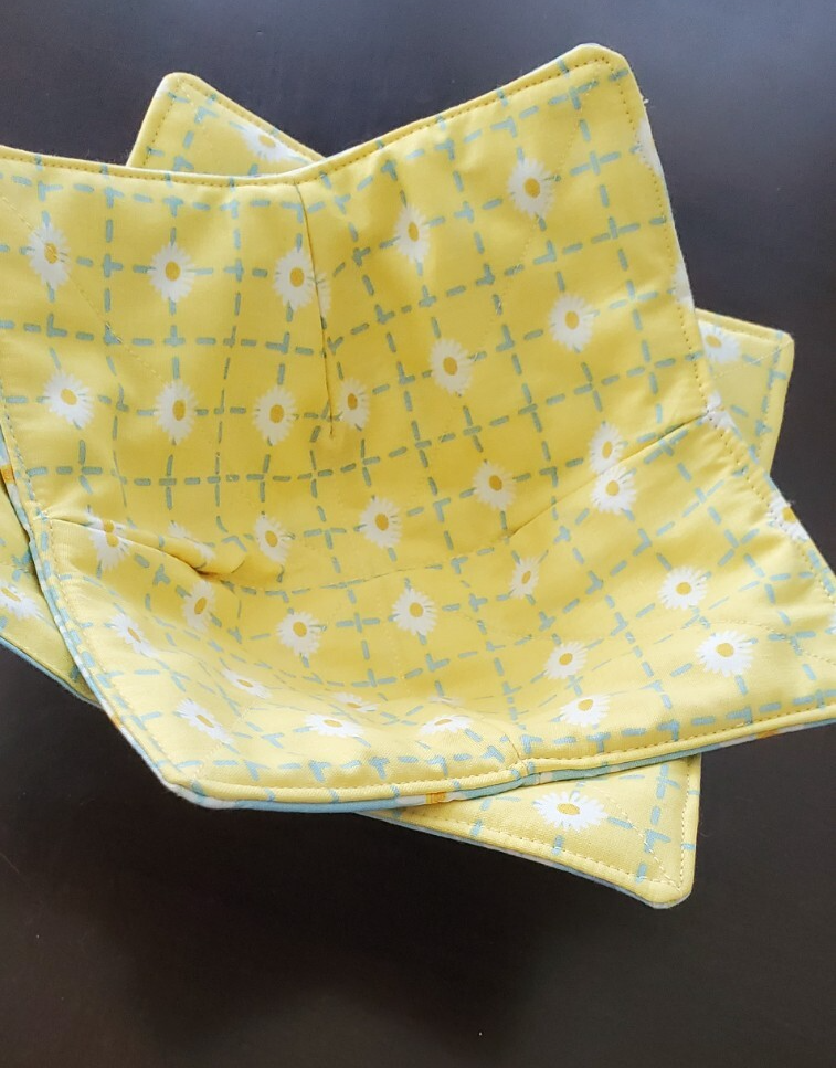 HANDMADE COZY BOWLS , BLUE WITH WHITE DAISIES, INSIDE YELLOW WITH BLUE LINES AND DAISIES, THE BOWL COZY IS 100% COTTON 100% DOUBLE COTTON BATTING COTTON THREAD, AND MICROWAVE SAFE SIMPLE PLACE YOUR BOWL OF FOOD IN THE COZY AND REHEAT AS USUAL, REMOVE THE BOWL WITH THE COZY TO AVOID BURNING YOUR FINGERS. ALSO GREAT FOR COLD ICE CREAM BOWLS. REVERSIBLE COZY IS MACHINE WASHABLE. Brand New Photo above is the actual item. Personally Handmade by myself. Shipped with usps first class mail. 30 day returns no questions. Shipped Within the 50 USA states. Please visit my ebay store. If you have any questions please feel free to E-Mail me prior to purchase. Should any issues arise after the purchase please message me through eBay and we can find a resolution.