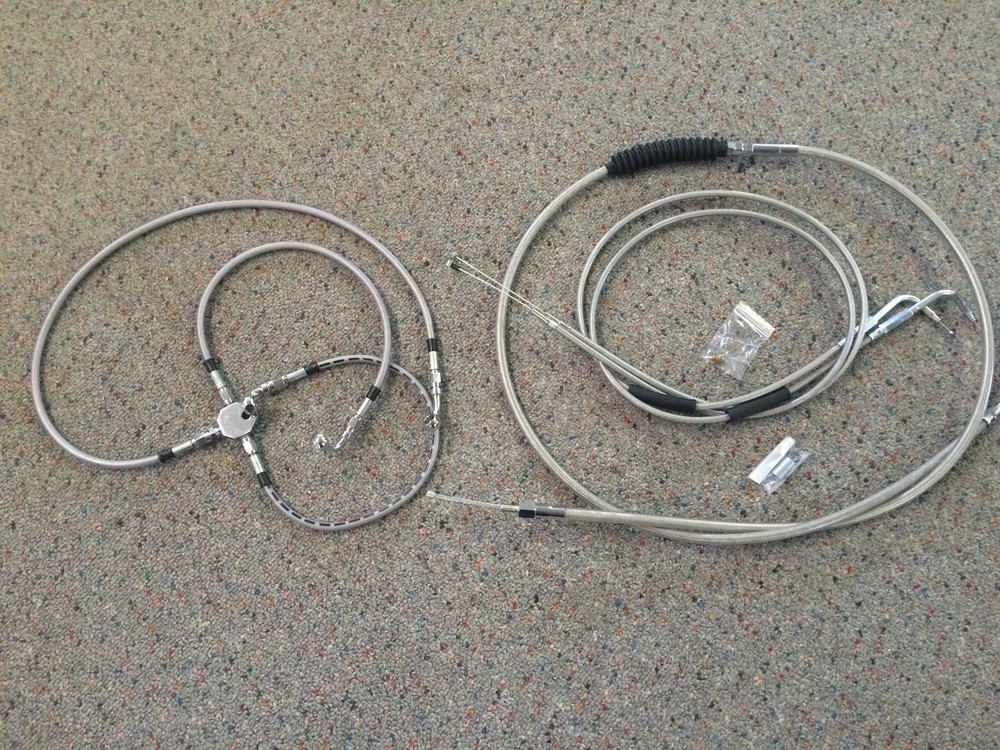 HARLEY TOURING WITH BATWING FAIRING 96-01 w/ CRUISE CONTROL CABLE KIT FOR 14" APE HANGERS KIT INCLUDES CLUTCH CABLE, THROTTLE IDLE CRUISE CONTROL CABLE, NON ABS DUAL DISC BRAKE LINES CUT AND SOLDER WI...