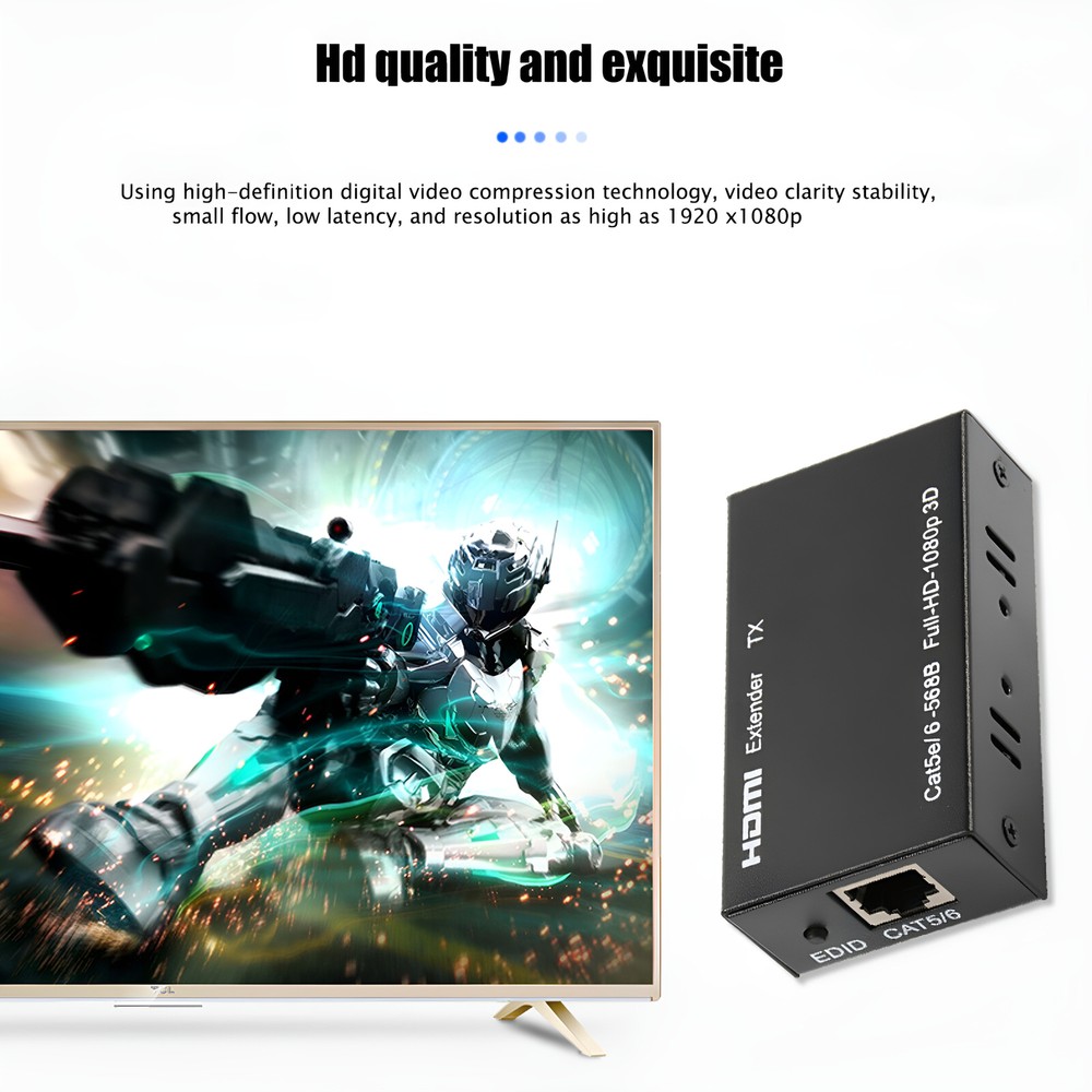 This HDMI extender is a game-changer! It delivers crystal-clear 1080p video up to 200ft using standard Cat5/6 cables—no more expensive HDMI runs. Super easy to set up, works flawlessly for home theaters or presentations, and saves so much hassle. The signal stays strong without lag or quality loss. Perfect for extending your setup without breaking the bank!