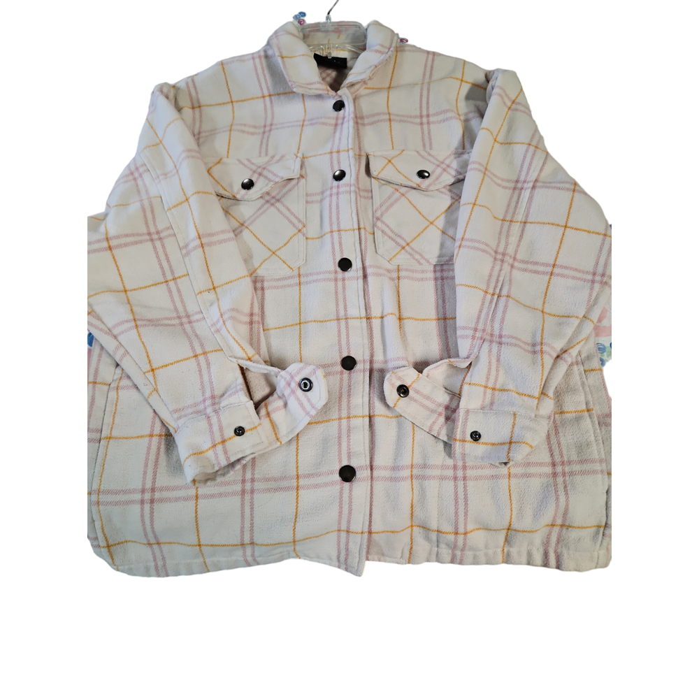 <![CDATA[<div>HFX Women's Long Sleeve Cozy Shacket Shirt Jacket - Pink/Gold - Women's Small - 2 Chest pockets. 2 Hand Pockets - 90% Polyester, 1% Wool, 9% Other Fibers - Shacket. Long Sleeve. Winter. - Pre-owned Great Condition **See all pics for any wear and condition. - From Smoke Free Environment - Item shown is the exact item you will receive. - No tags ** Be sure to Follow me, I post several shoes / items often, and offer discounts when you bundle. ** SHIPS FROM TENINO, WA :)
