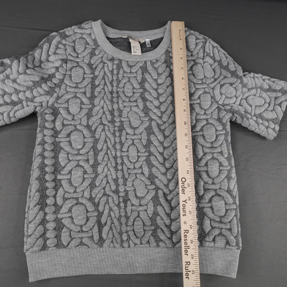 This top is so soft and cozy—perfect for everyday wear! The textured gray fabric adds a nice minimal touch, and it fits just right. Love that it’s pre-loved but in great condition, plus the detailed measurements help a ton. Super happy with this sustainable find!
