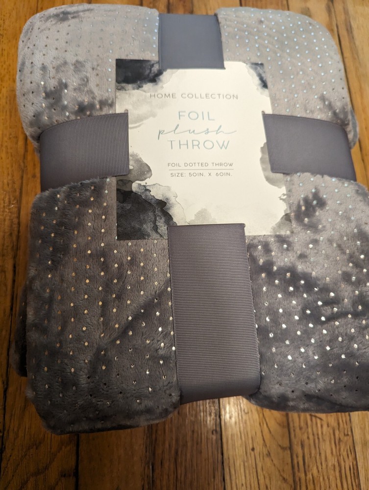 HOME COLLECTION FOIL PLUSH THROW. GREY Happy Bidding!!