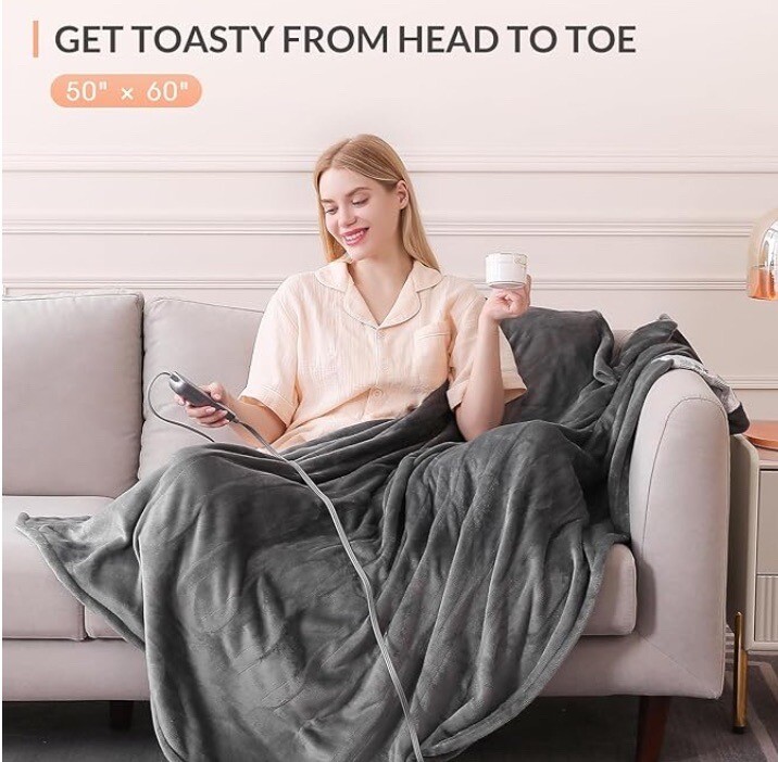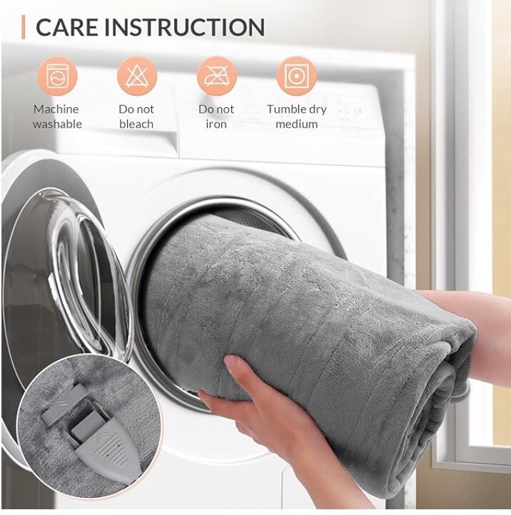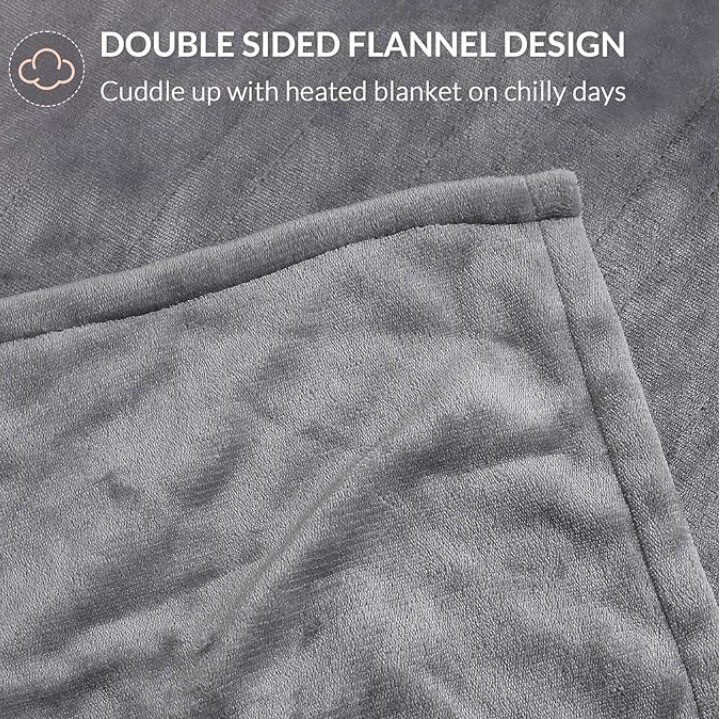 - Full refund guarantee: Contact us 24/7 for issues; get a full refund if unsatisfied. - Fast heating & stable temp: 4 adjustable heat settings, even heat distribution, preheat function. - Auto-off & overheating protection: ETL & FCC validated, 3 hrs auto-off timer, intelligent temperature detection. - Double-sided comfy flannel: Super soft design for cozy warmth on chilly days. - Long detachable power cord: 9.1 FT cord for flexible use, doubles as a regular blanket. - Machine washable: Easily care for and maintain by removing power cords and machine washing.
