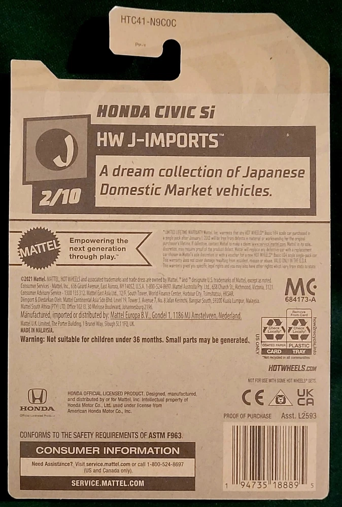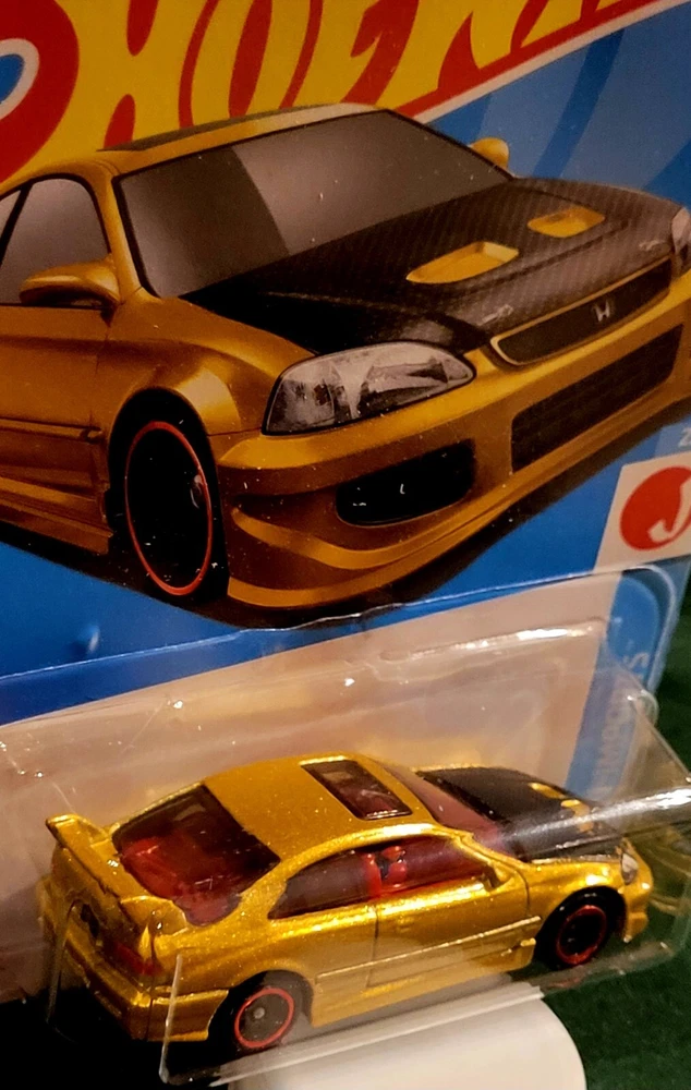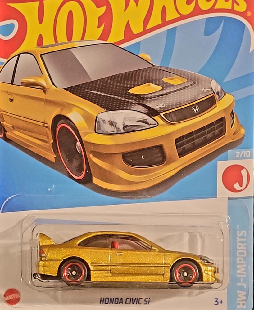 This Hot Wheels diecast model of a 2024 Honda Civic Si in Metalflake Gold is a must-have for collectors. The 1:64 scale model is part of the Hot Wheels Metro series and features unopened packaging. It was manufactured in 2023 and is sealed. The model is designed with the character family of Tam, Martis. Tscherne Design and is perfect for fans of performance-oriented 6th Gen Civic cars. The vehicle make and model are clearly marked on the packaging, making it easy to identify. IBOX×3