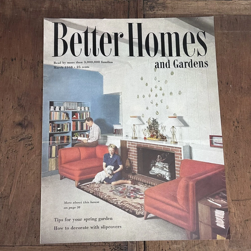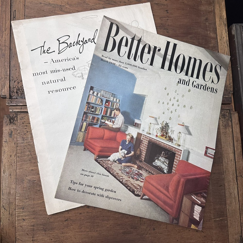 The product is a re-print issue from March 1948 of Better Homes & Gardens magazine, along with the House Beautiful Backyards issue from 1949. Both magazines fall under the Home & Garden genre, offering insights and inspiration for beautifying outdoor spaces.