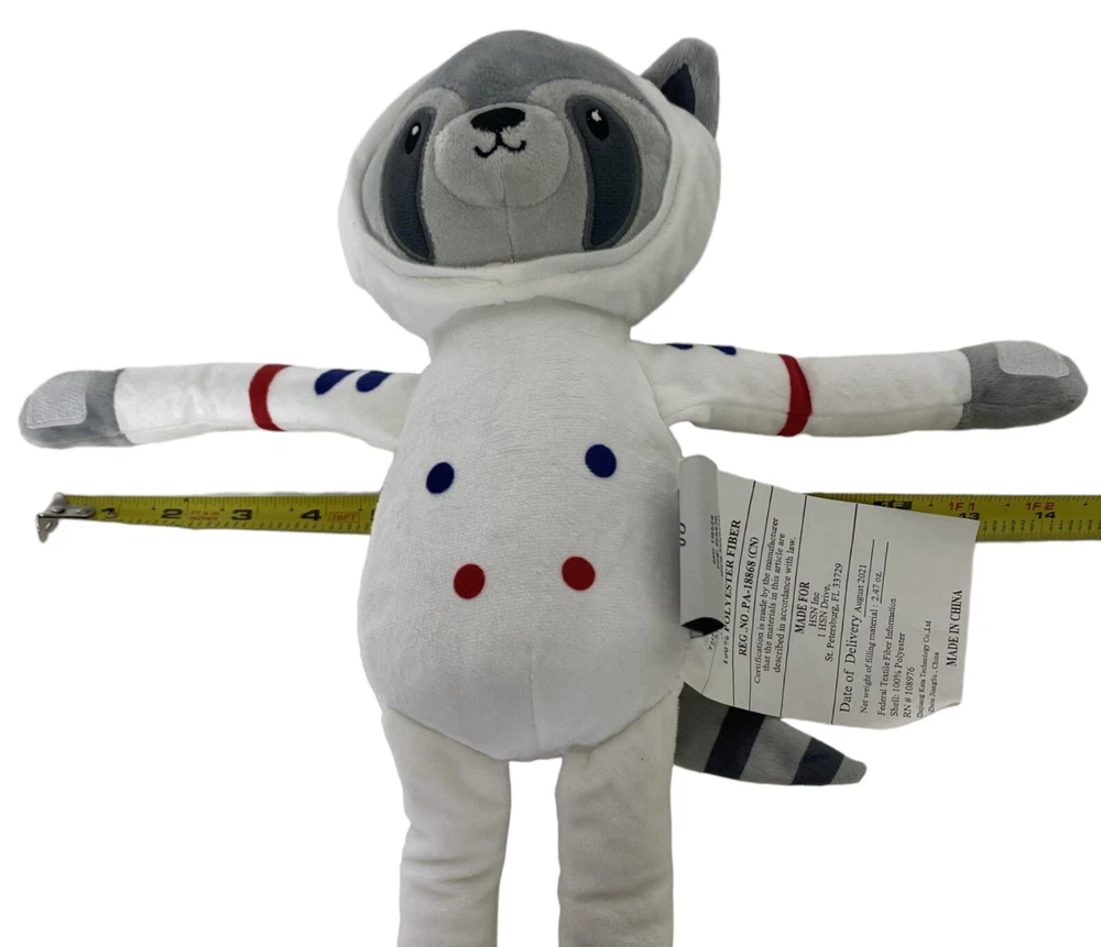 HSN Warm & Cozy Gray Raccoon Plush Astronaut Stuffed Animal Blanket Hugger, sticky extremities (with hook and loop on both hands and feet) Soother Toy. Sewn eyes and nose. This listing is for the plush with new fleece Throw Blanket. The fleece throw is brand new. The Plush is preowned condition. No rip or tear. No spot or stain. Never played with just displayed. The stuffed toy measures approximately 18 inches long. Fleece Throw is 50x60 inches. Please see the photos for a detailed description of the item(s). Photos are part of the item description. We do our best to give the best true description of the items we are listing. Be advised that the actual color of the item may vary due to different color variance of each device. We do bundles/combine shipping. Message us to see if we can save more on shipping cost. Thank you for supporting our small business. Check out our store for more items for sale.