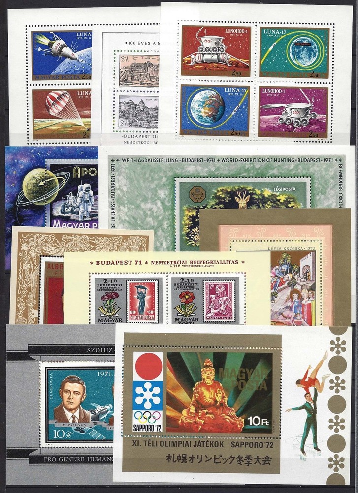 HUNGARY 1971.MNH!!! Complete Year Set with Blocks Michel : 2642 - 2727. Michel block : 79,80,81,82,83,84,85,86. Bid On my Item!!! Payment methods : I prefer Paypal. Shipping fees of multiple complete year sets: 1-2 year sets : 3.00US$ -Europe and 3.50US$ -Overseas 3-4 year sets with registration : 7.00US$ -Europe and 7.50US$ -Overseas 5-8 year sets with registration : 10.00US$ -Europe and 11.00US$ -Overseas 9-13 year sets with registration : 15.00US$ -Europe and 16.00US$ -Overseas