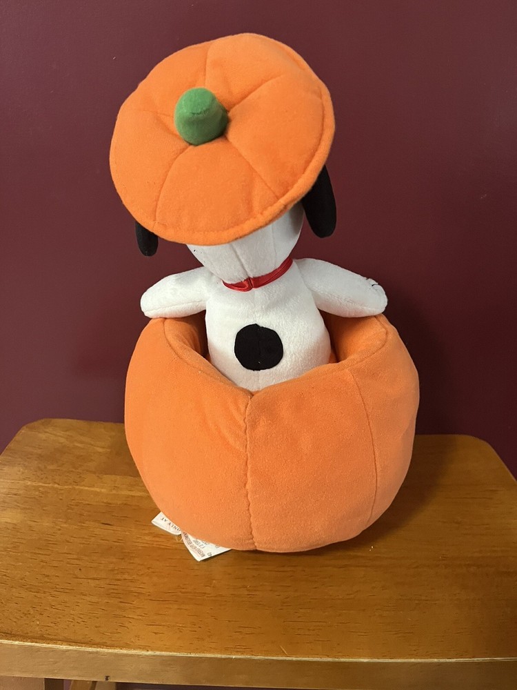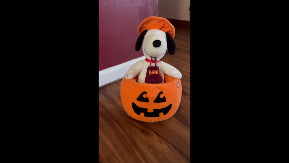 Used condition with some faint discoloration at the base of the pumpkin. Seems that the battery compartment had some previous corrosion that was cleaned. Item has been tested and found to be in working condition. Snoopy walks and plays a spooky tune. Approximately 13” tall and 7” wide. Smoke free, pet friendly home. Batteries not included.
