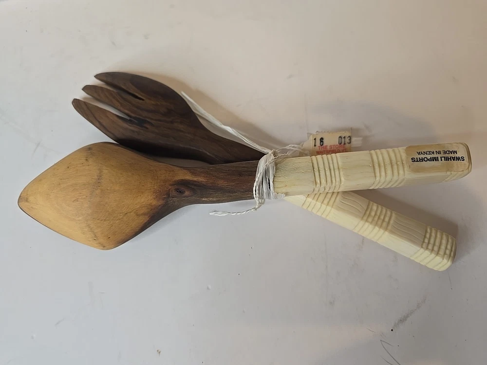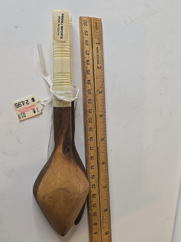 Swahili Kenyan Import Hand Carved Olive Wood Brand New Vintage with original Tag Ships Fast and Free...